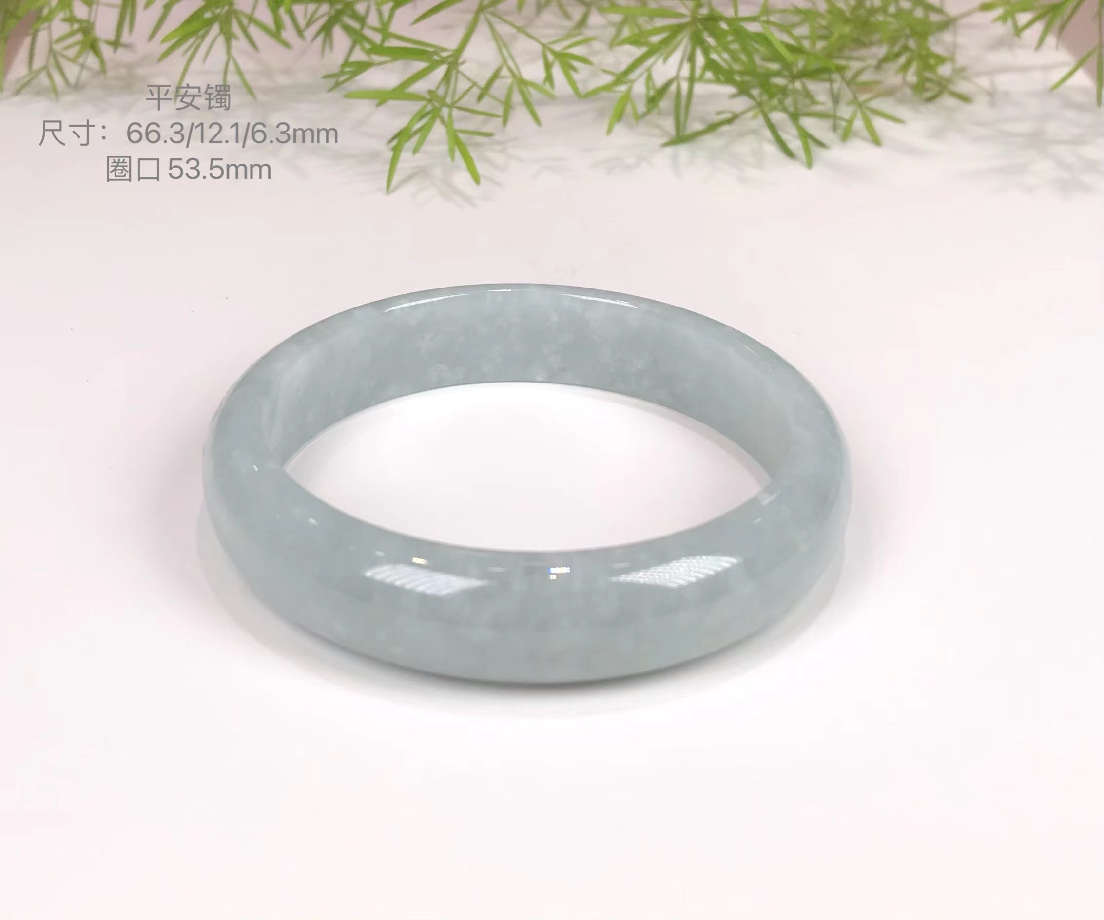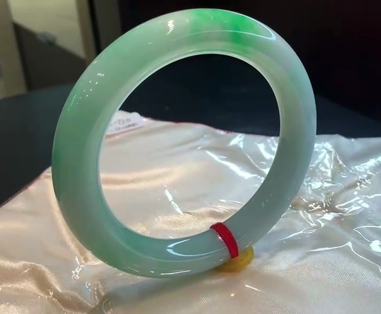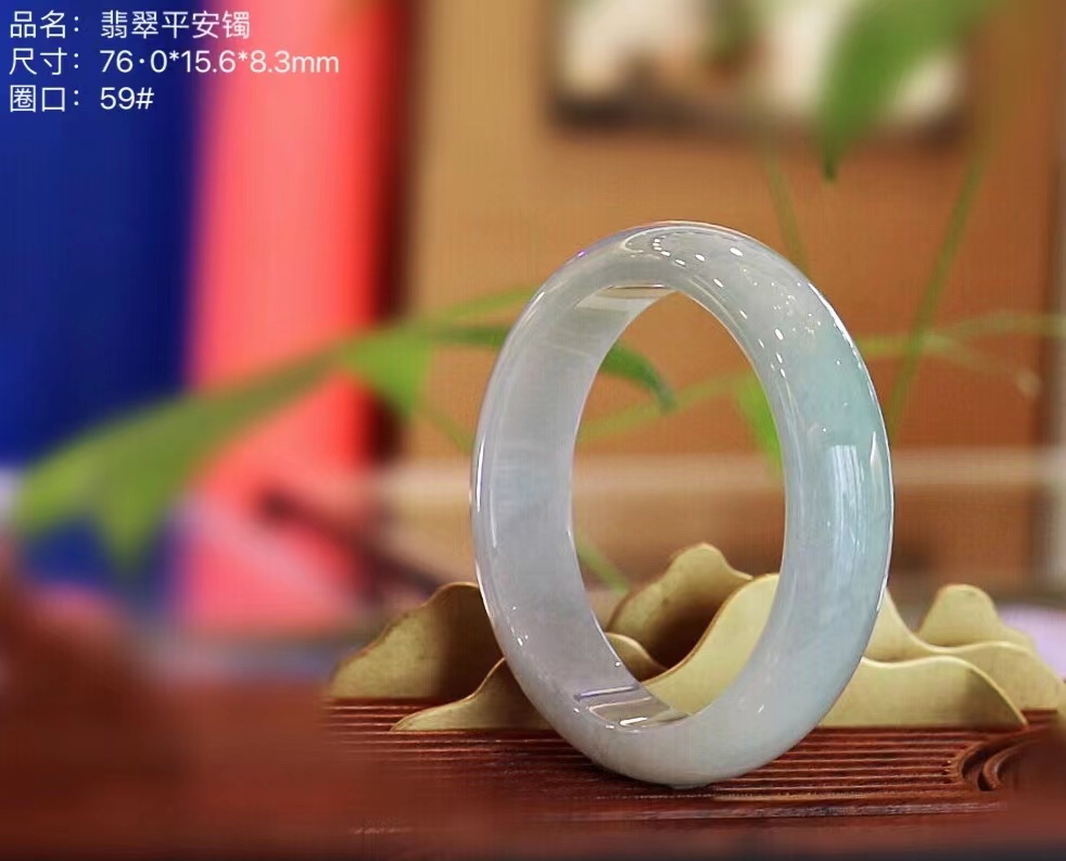 翡翠平安镯外形圆润,内部平整,象征着:在人生道路上的顺利如意,平安幸福!