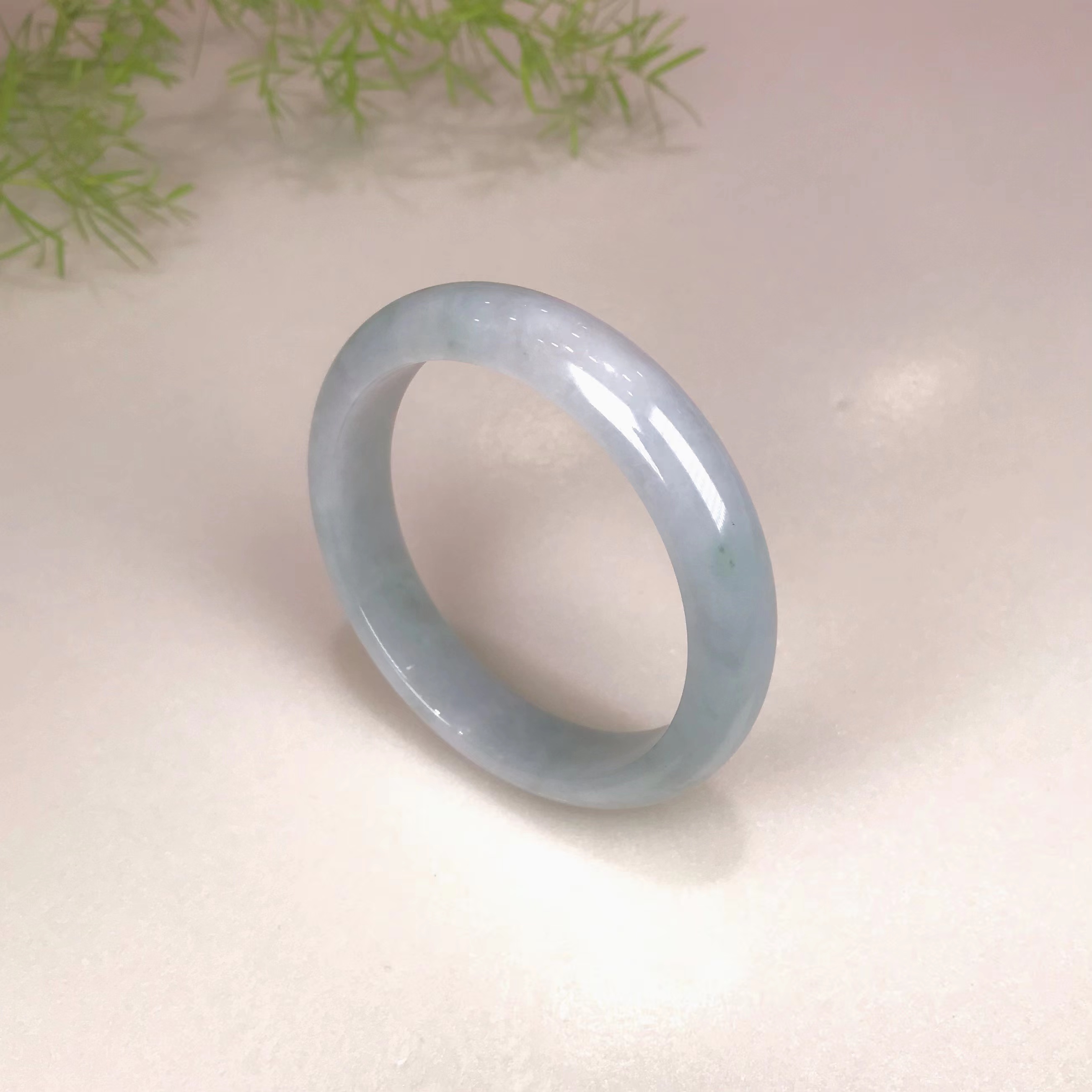 冰豆种浅色翡翠平安镯:整体淡绿,色匀,小巧、秀气、淡雅。