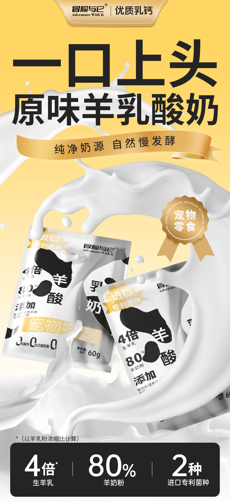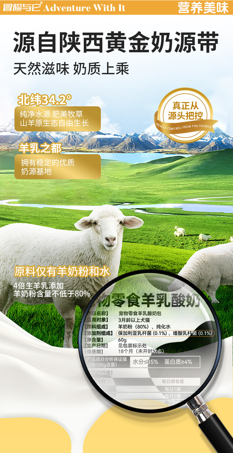 冒险与它羊乳酸奶60g/袋猫咪零食山羊奶补充营养狗狗零食幼猫幼犬