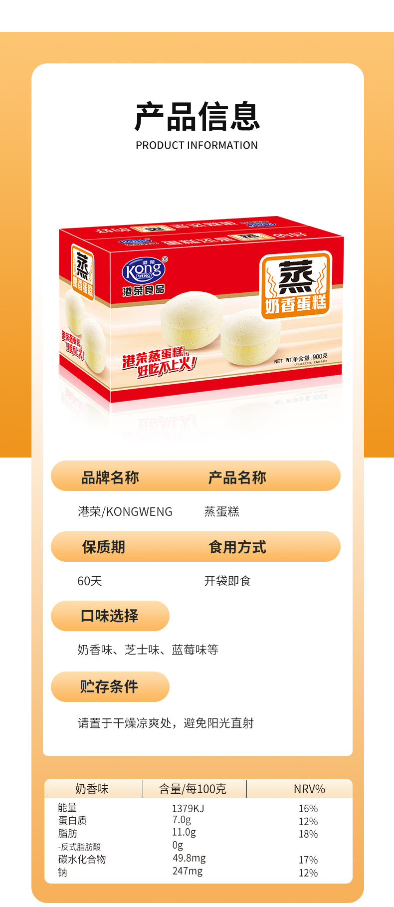 港荣蒸蛋糕 奶香芝士椰香蓝莓 口味多重选择