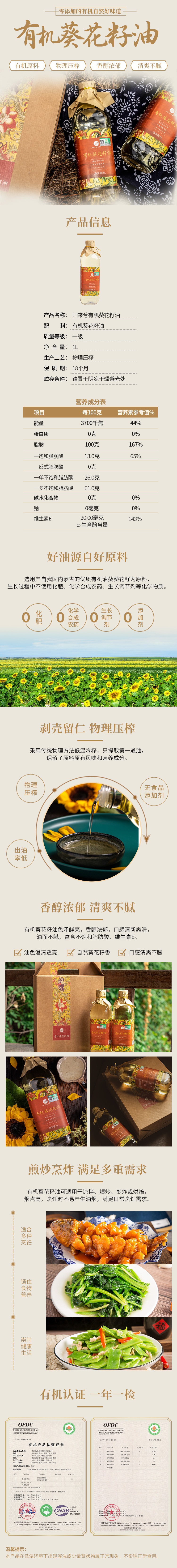 有机葵花籽油1L/瓶 全国配送(偏远地区除外)