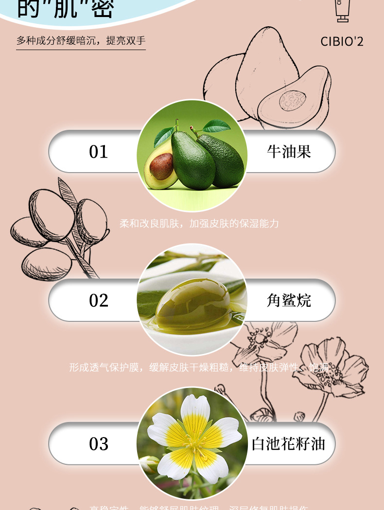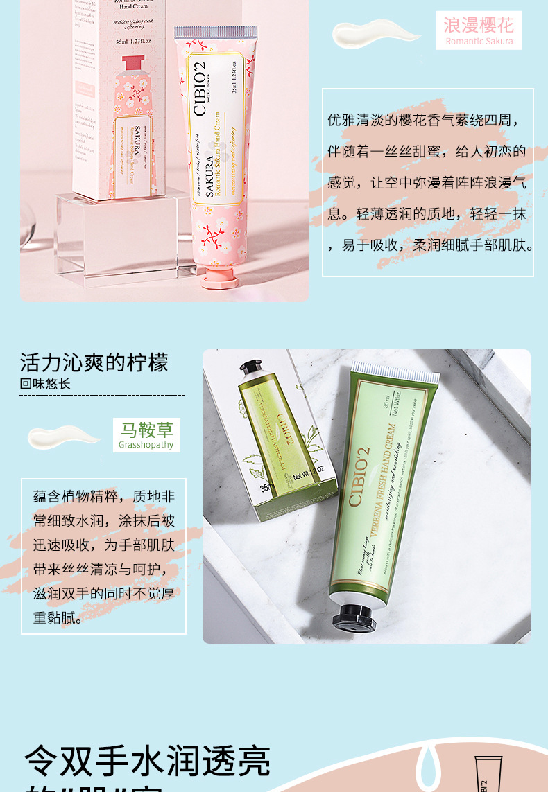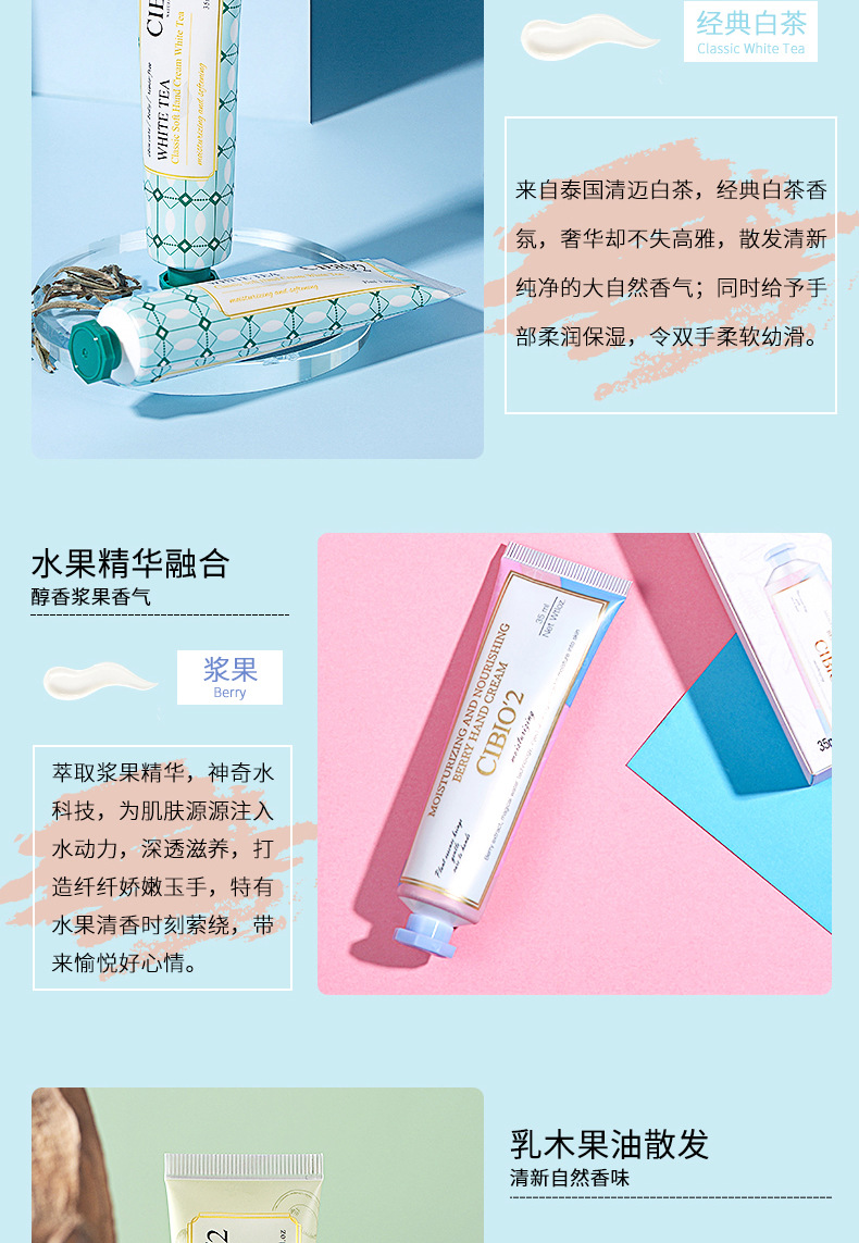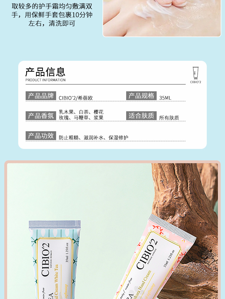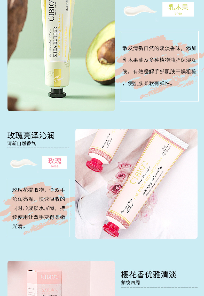 【一般贸易进口】泰国CIBIO'2保湿滋润补水护手霜35ml 玫瑰 浆果 马鞍草味 乳木果 樱花 白茶