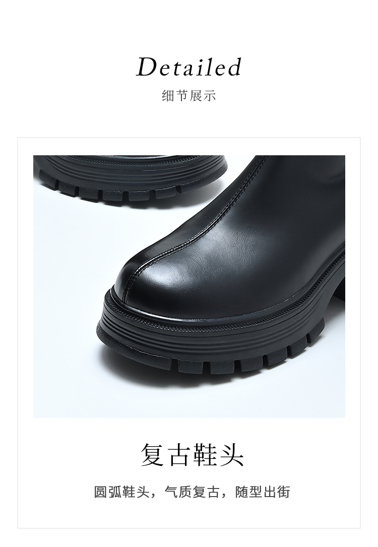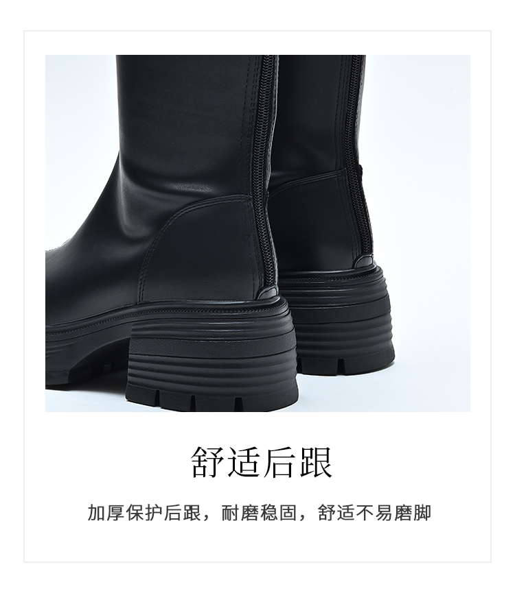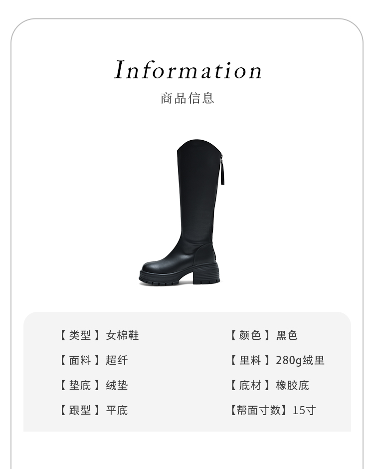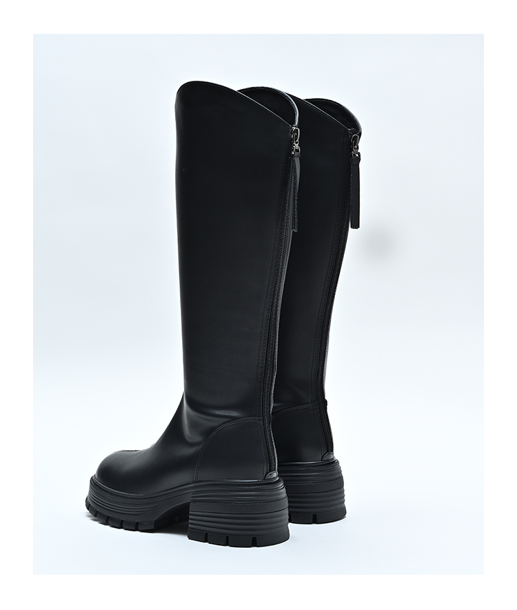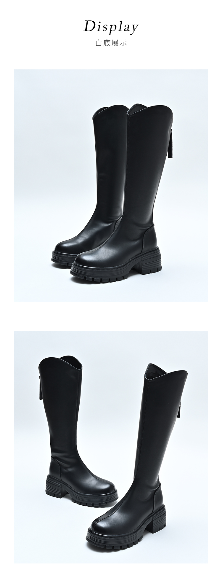 经典鲨2024冬季新款百搭圆头加绒保暖后拉链中粗跟长筒靴女KW385-D58011