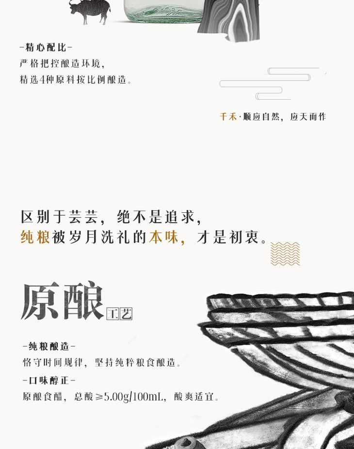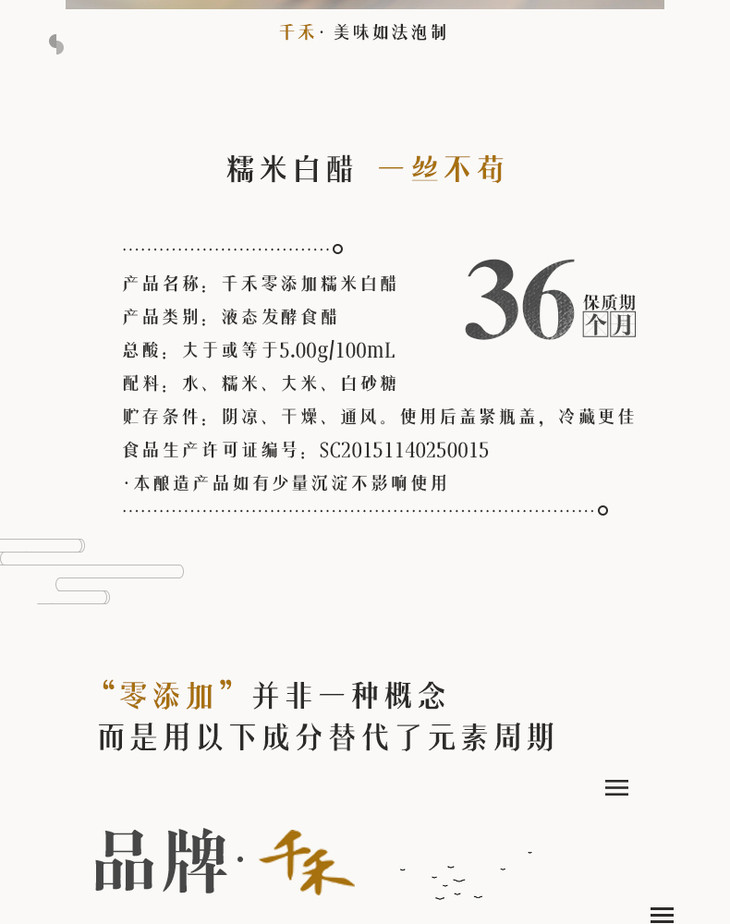 千禾 醋 零添加酿造糯米白醋 不使用添加剂 500mL