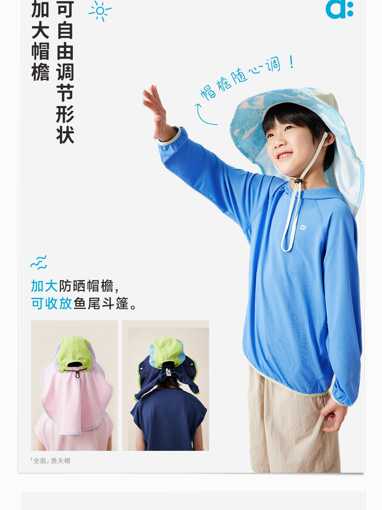 【好友特惠-玩水系列】幼岚「全面」渔夫帽360度头颈肩遮阳儿童帽子亲子款ZY