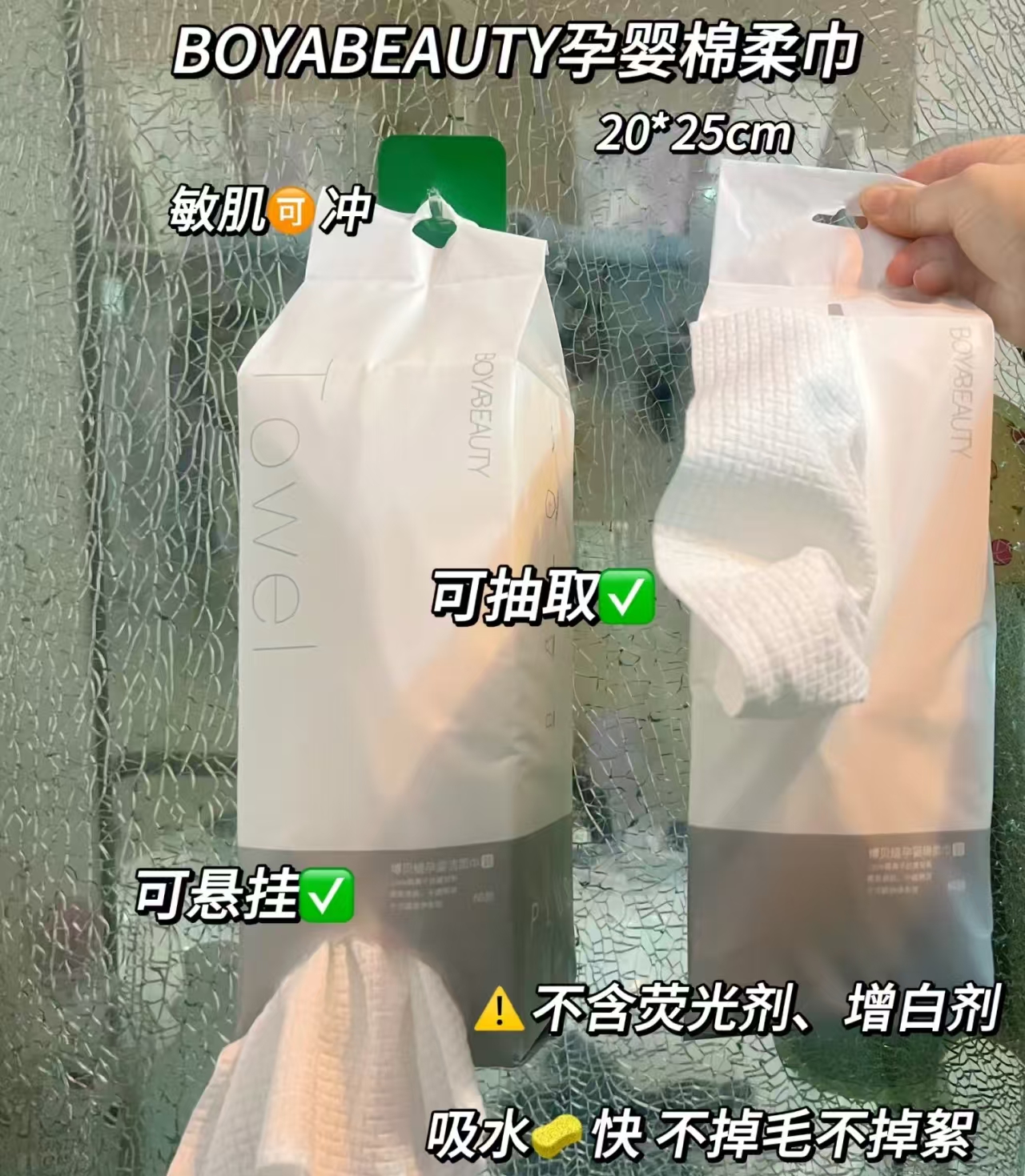 4楼Eubelle欧蓓 BOYABEAUTY博贝缇孕婴洁面巾/洗脸巾60抽/包 plus加大加厚 抽取式 活动价:18元