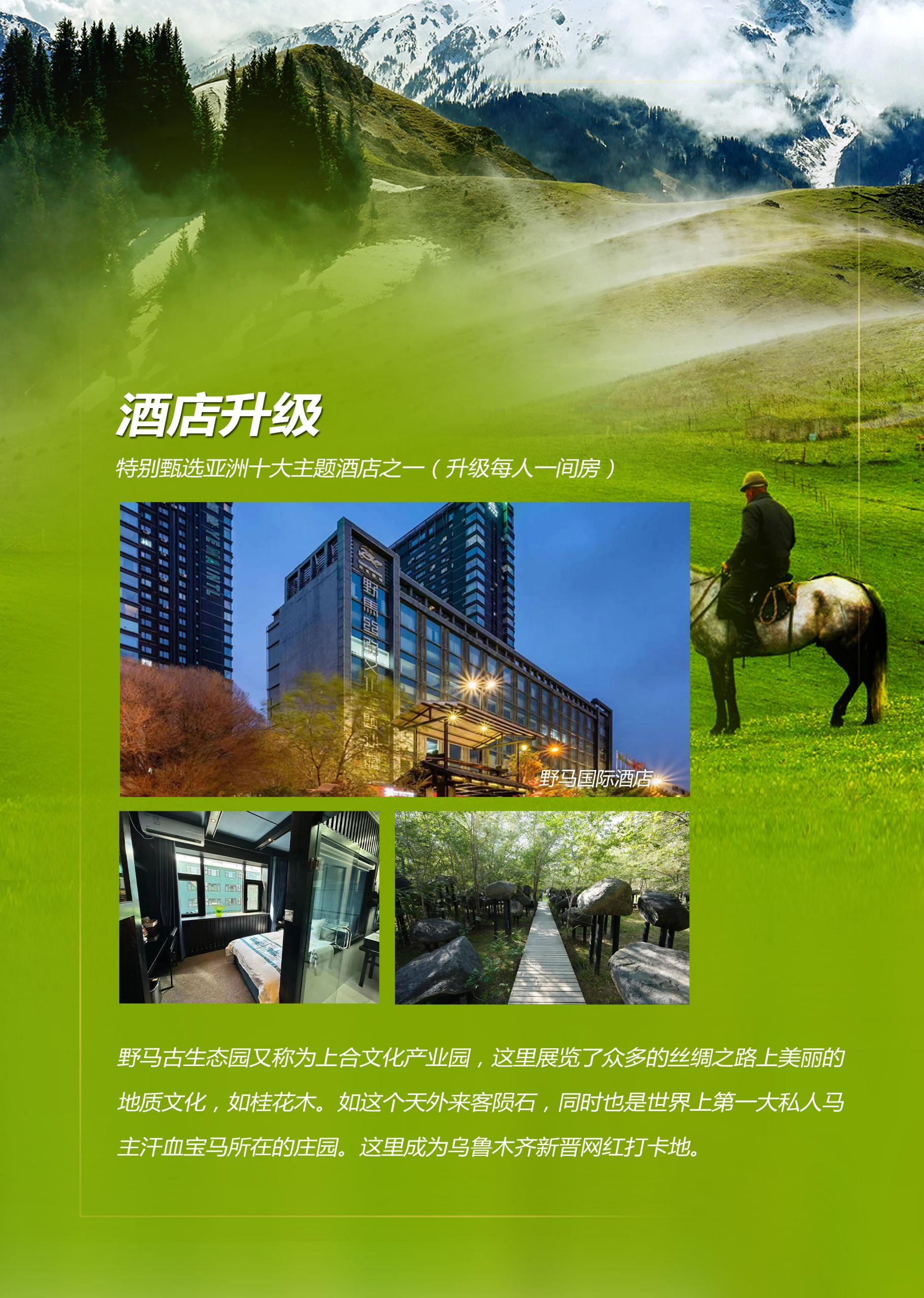 2、酒店:全程均为双人标准间(野马丝路驿站酒店升级为一人一间);