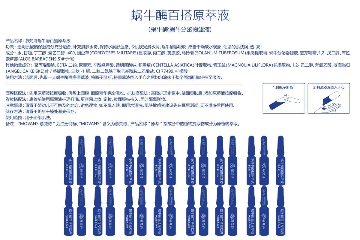 慕梵诗蜗牛酶百搭原萃液美容院正品即拍即发套盒原液安瓶精华液