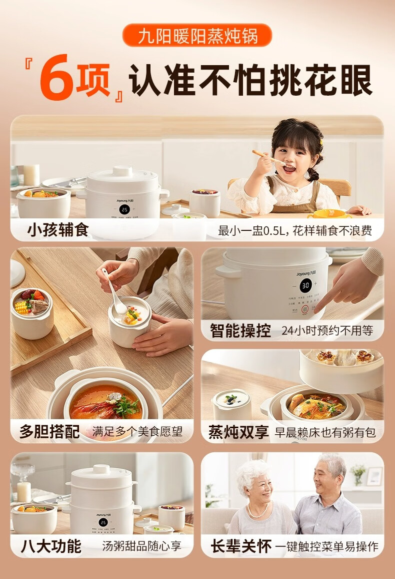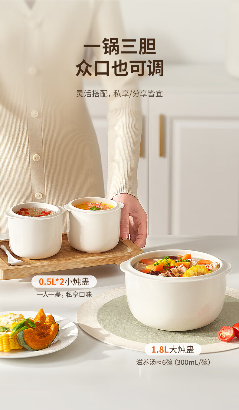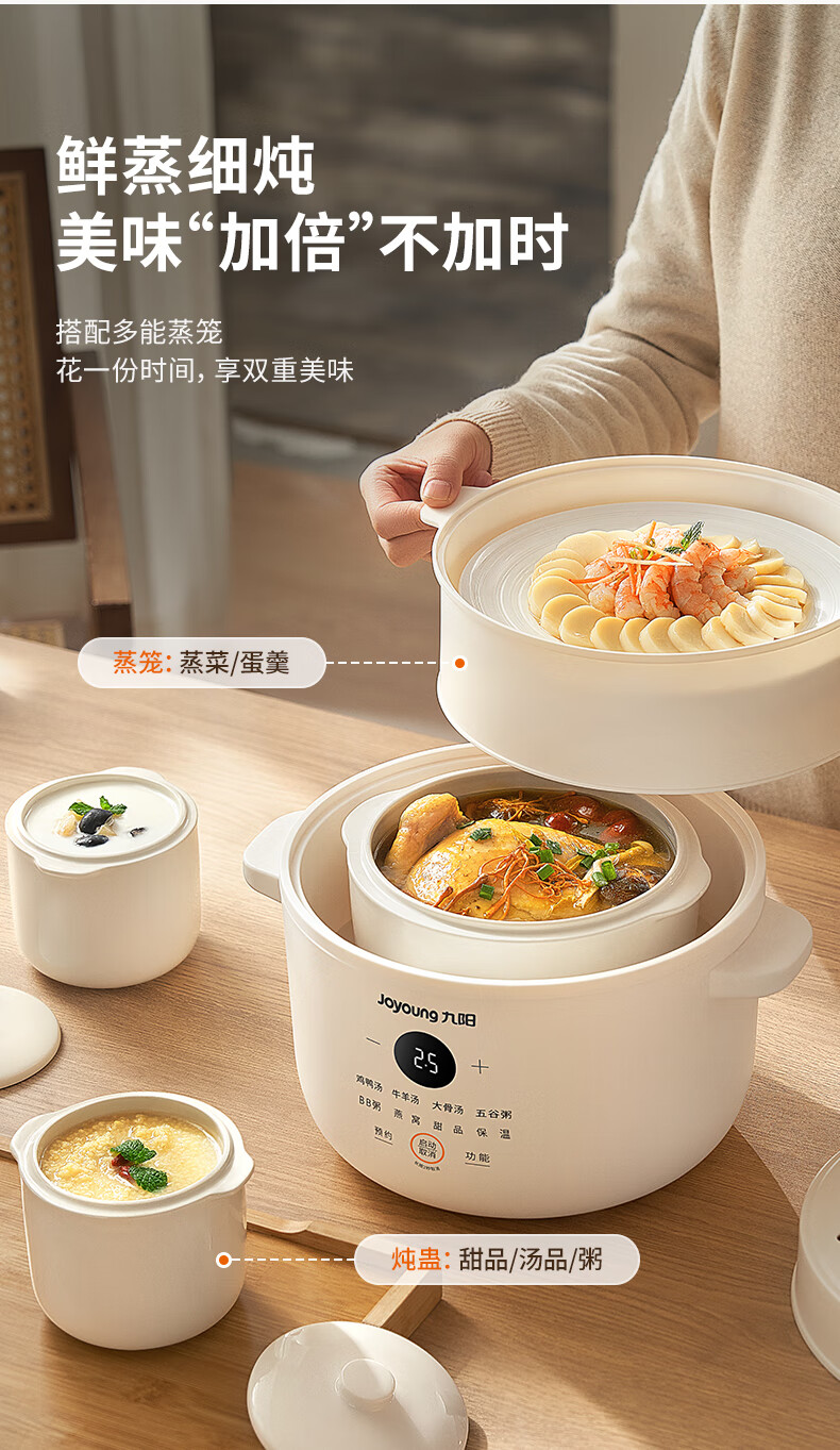 九阳隔水炖电炖锅婴儿辅食锅宝宝煮粥燕窝煲汤锅一锅五胆陶瓷炖盅