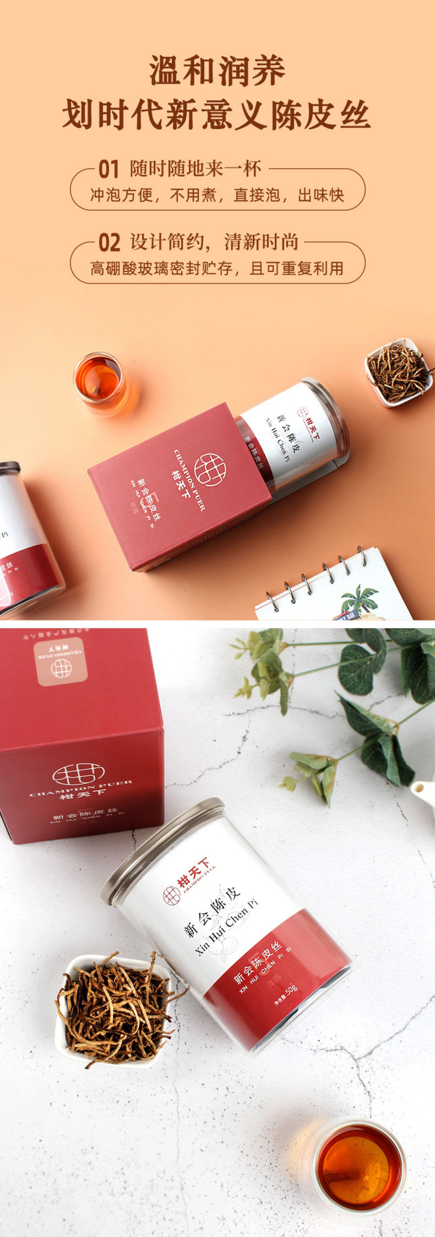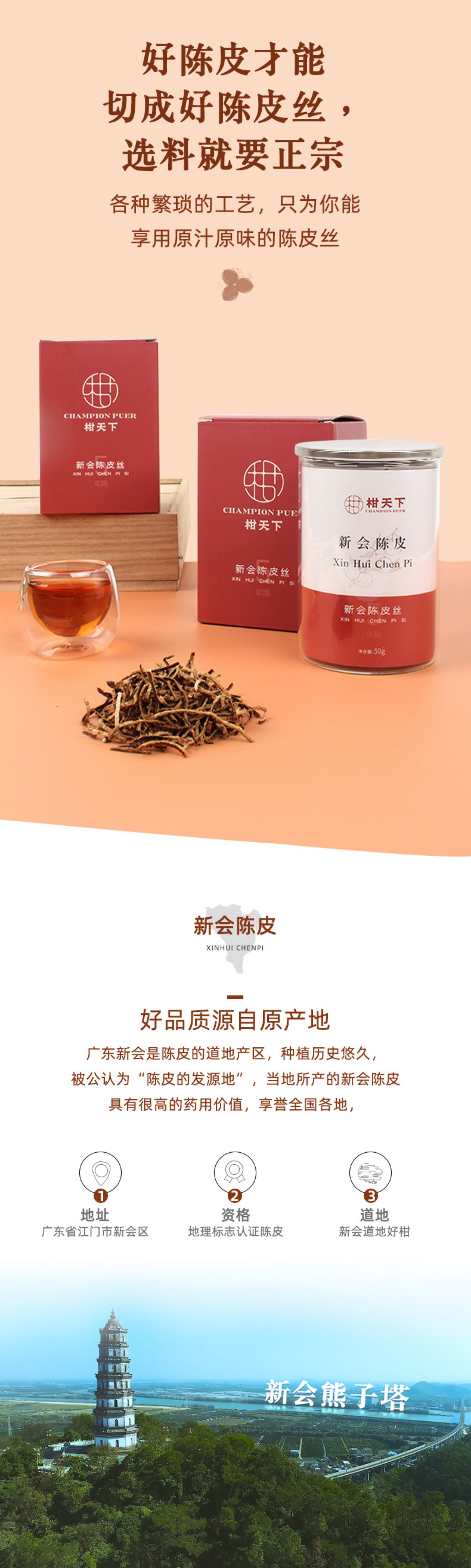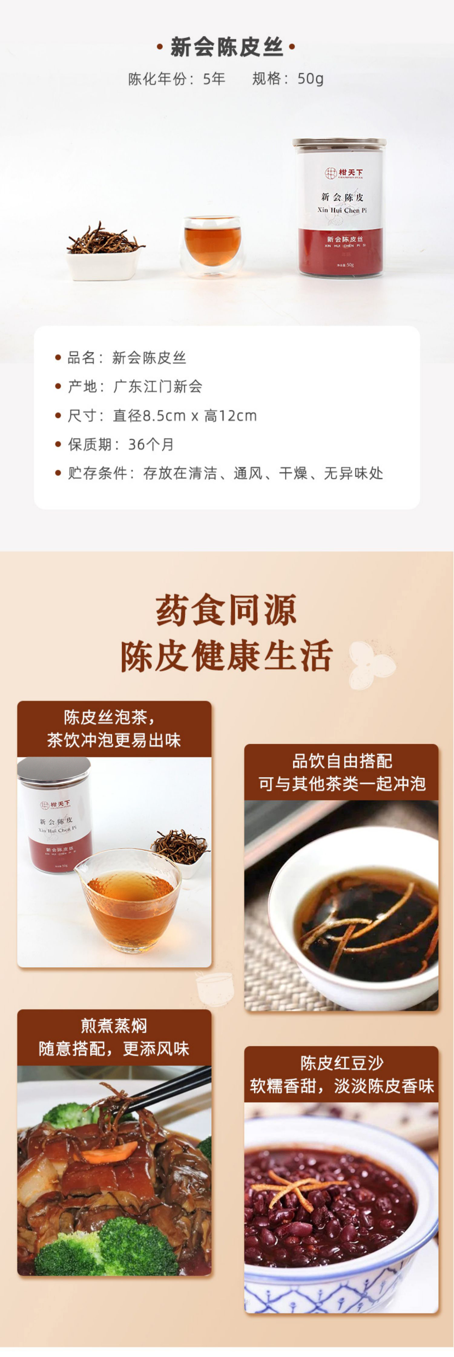 柑天下新会陈皮丝泡茶5年大红老陈皮柑橘皮50g瓶装