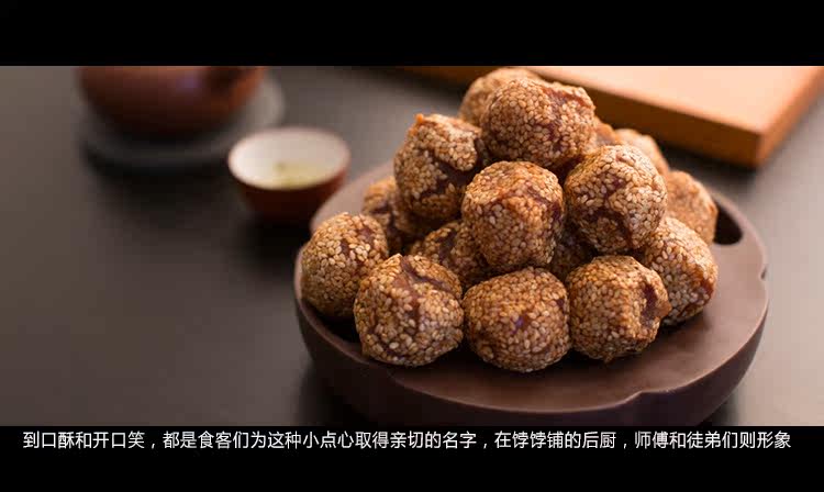 它又叫开口笑,是因为一口咬开,不仅仅是面皮的酥和芝麻的香,更有传统茶食的感觉。