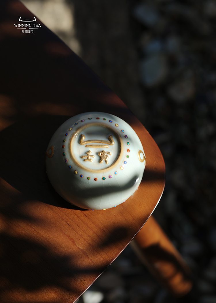 问鼎汝瓷鼎峰系列天青壬寅七宝战鼓杯(描金)