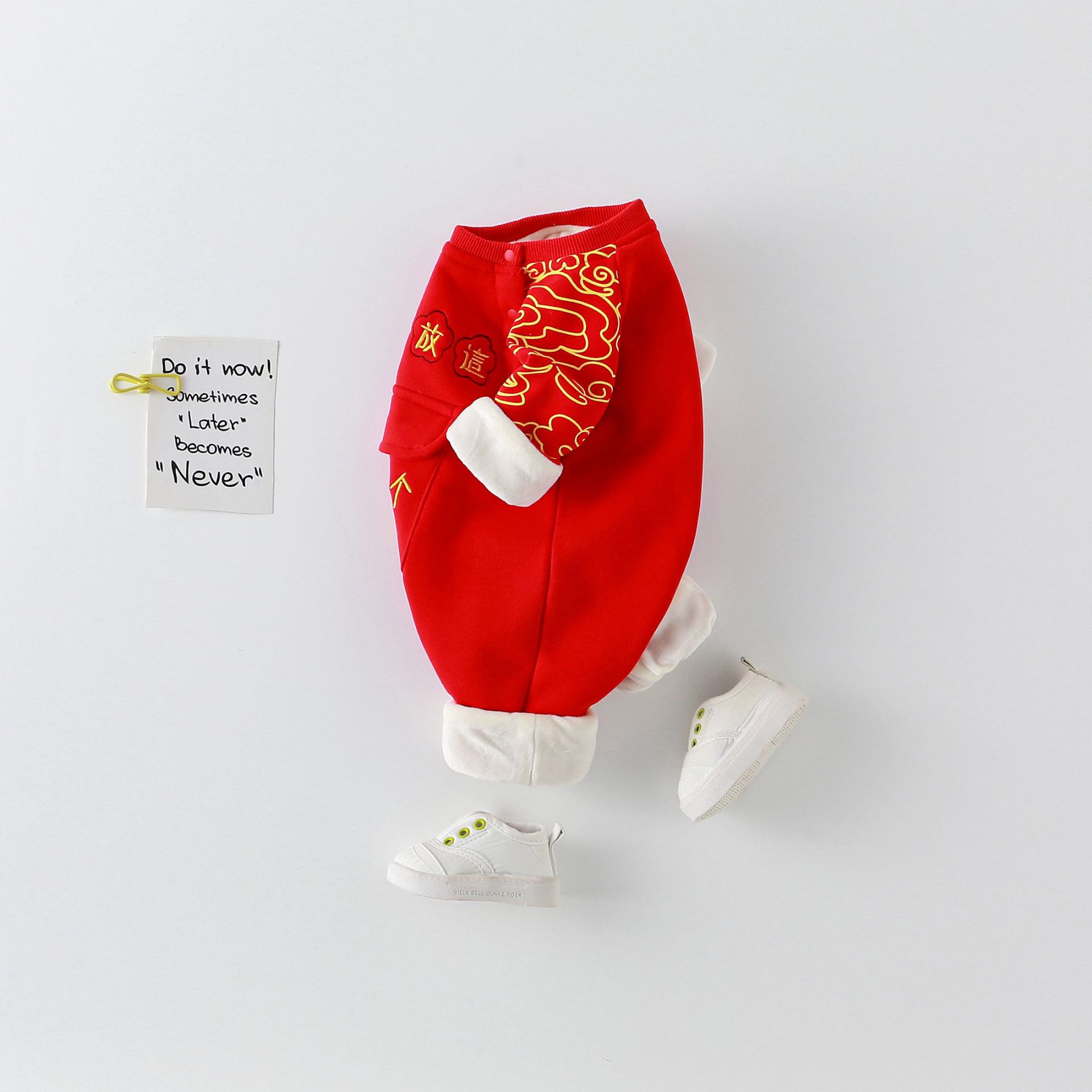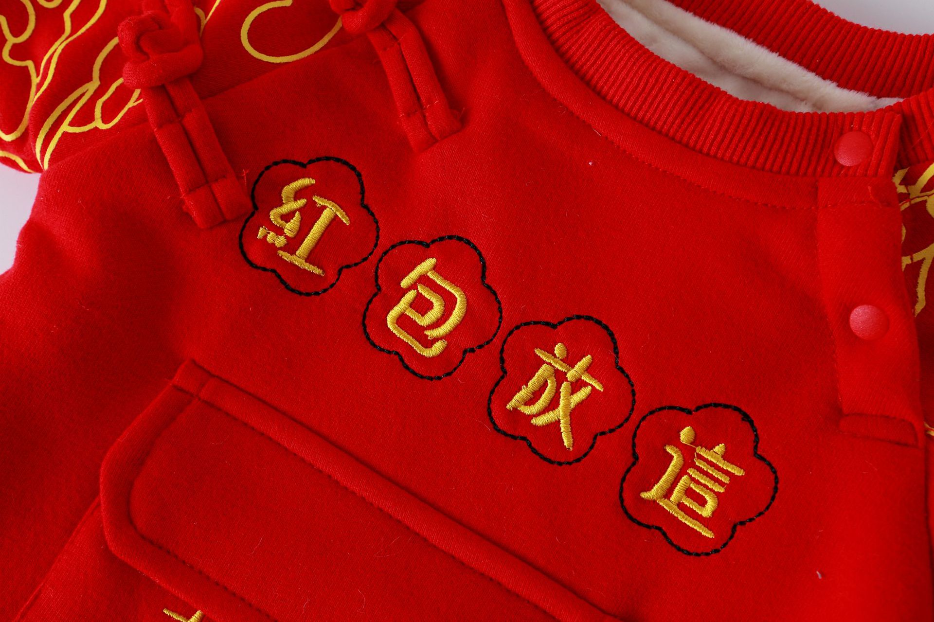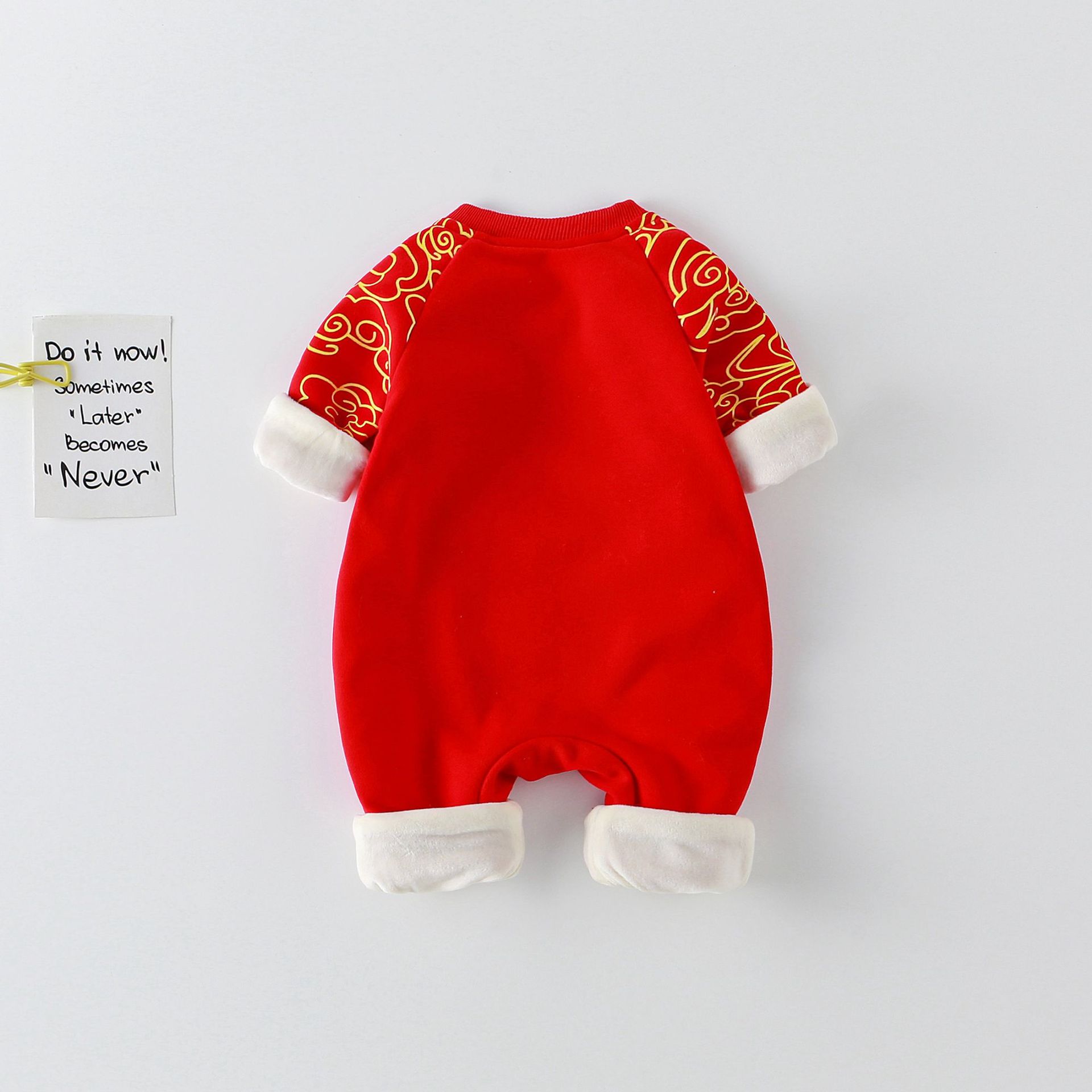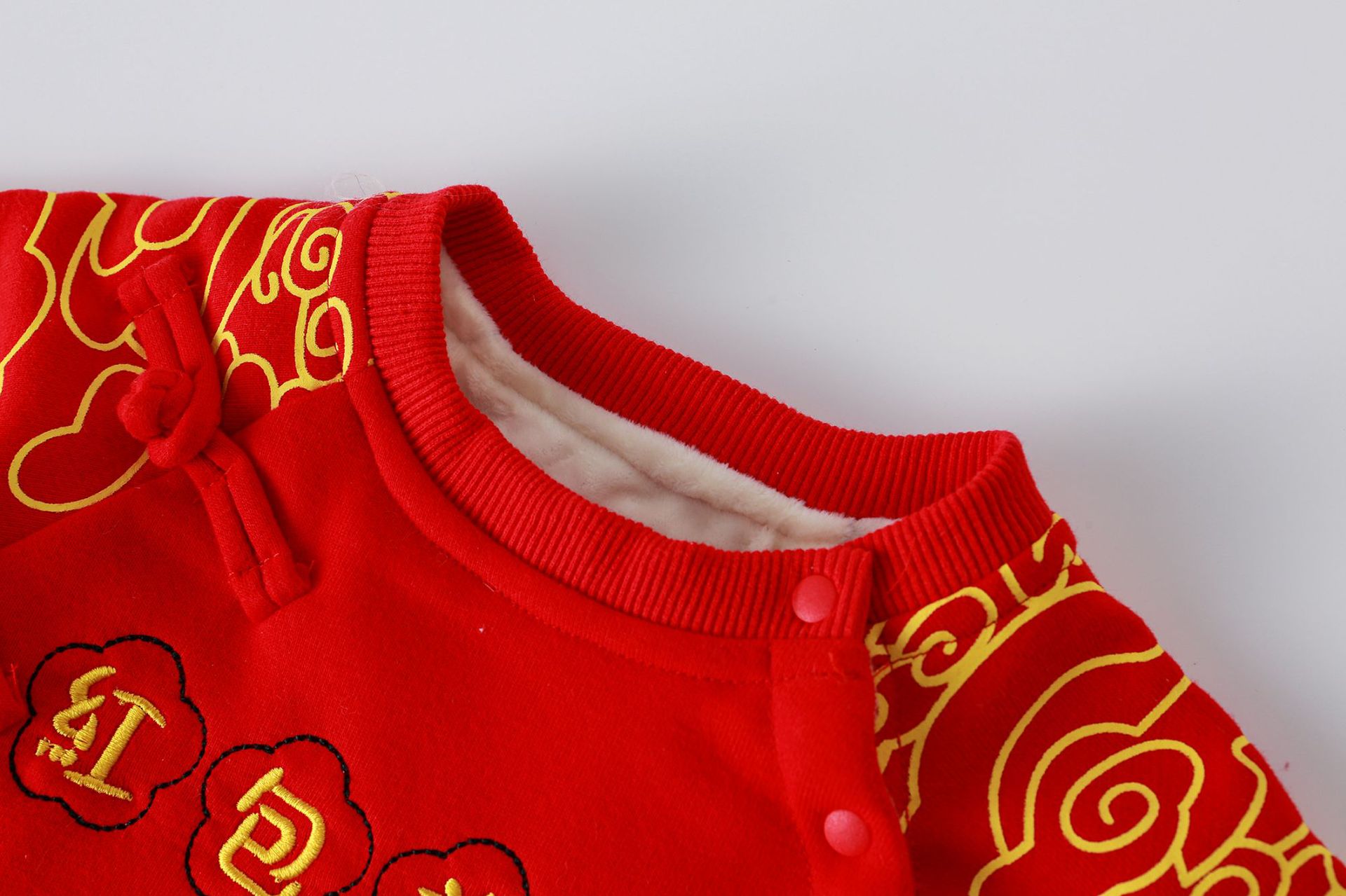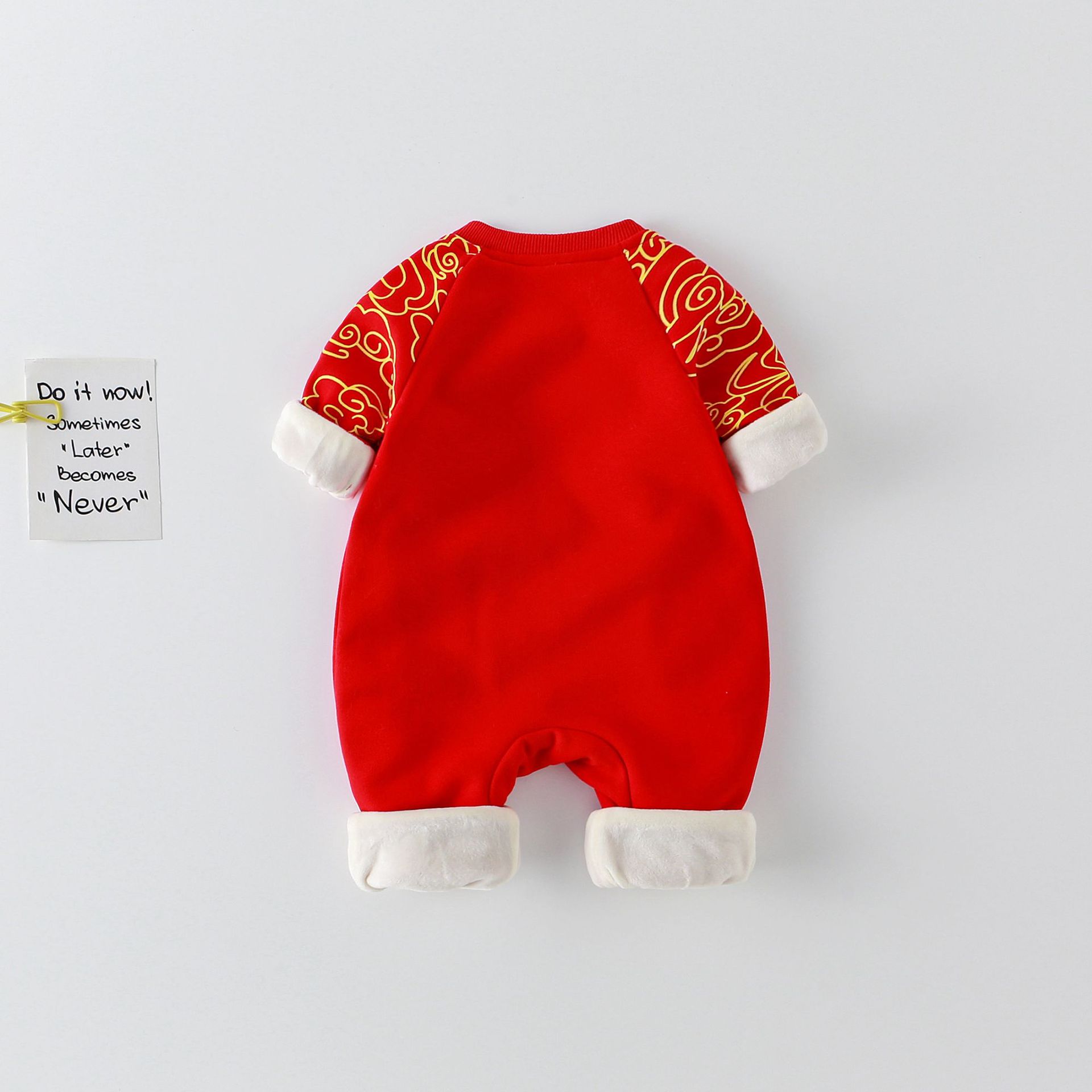 男女宝宝秋冬款图腾新年服国潮宝宝加绒衣服婴儿连体衣红包放这