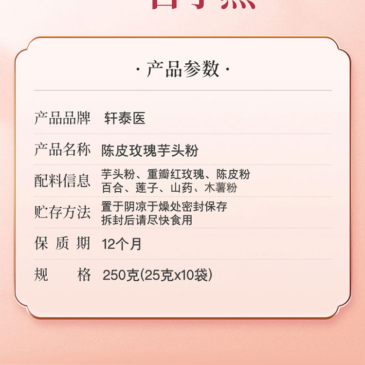轩泰医陈皮玫瑰芋头粉 重瓣玫瑰陈皮芋头百合莲子山药250g