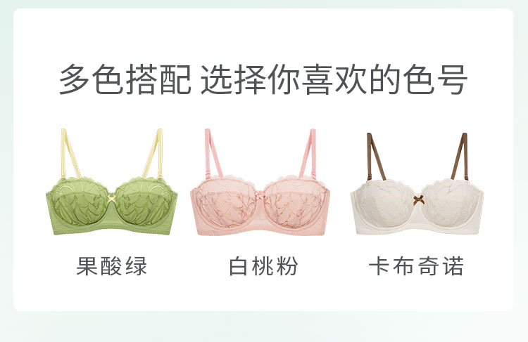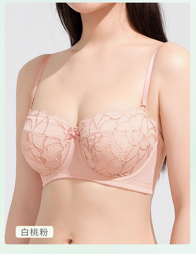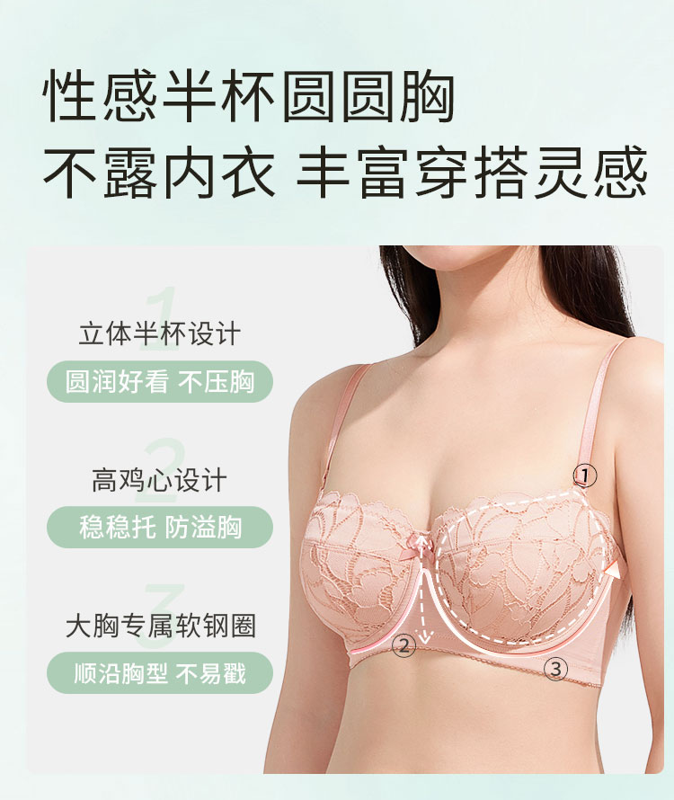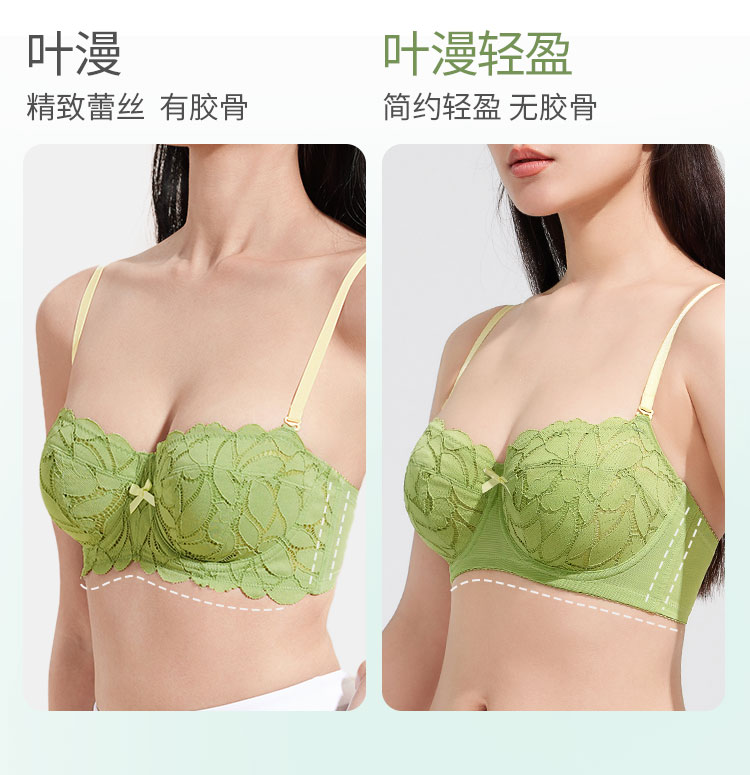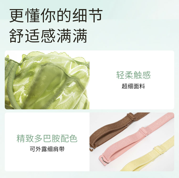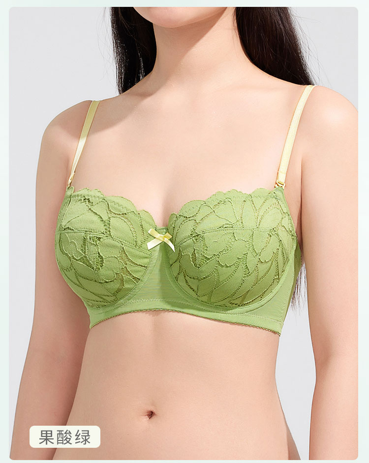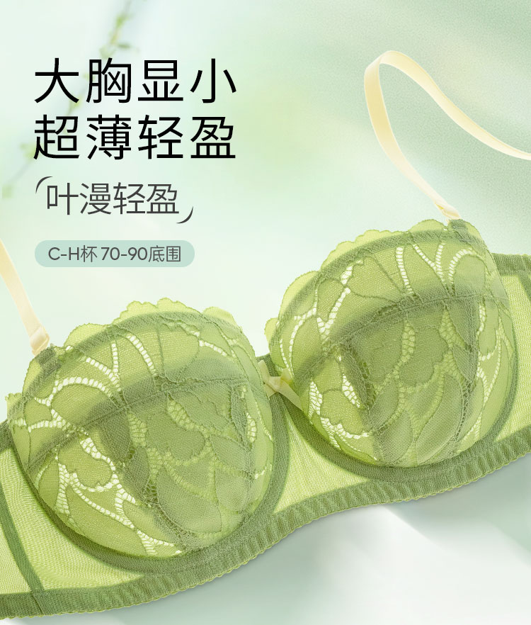 [叶漫轻盈]大胸显小半杯超薄蕾丝撞色肩带可拆卸防凸点内衣