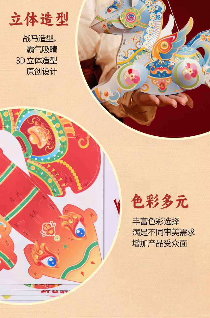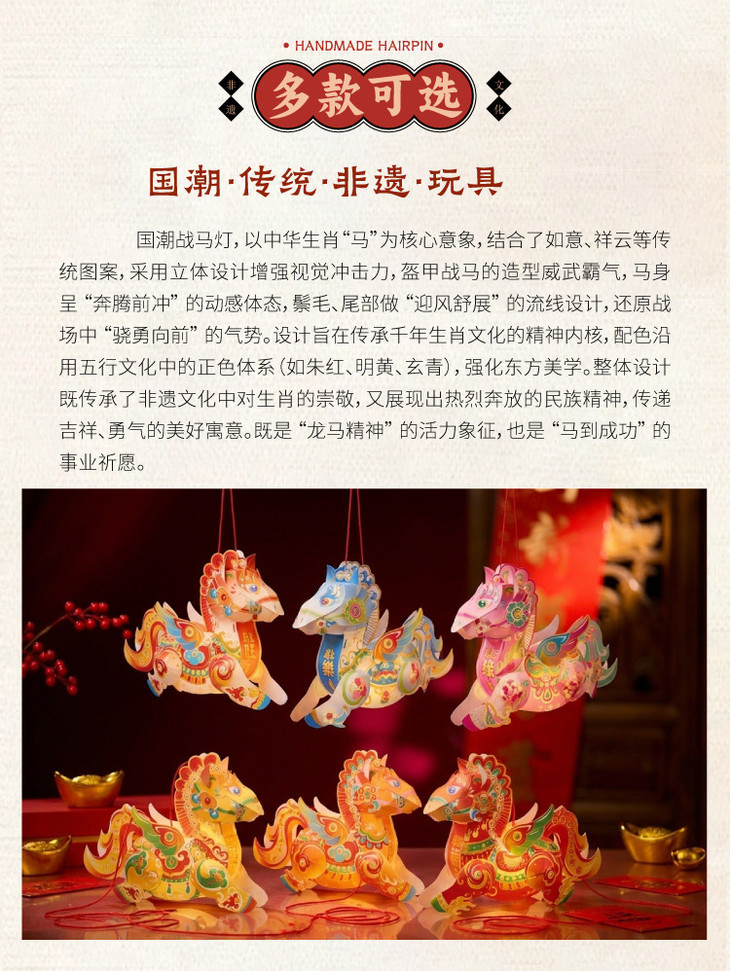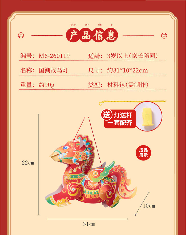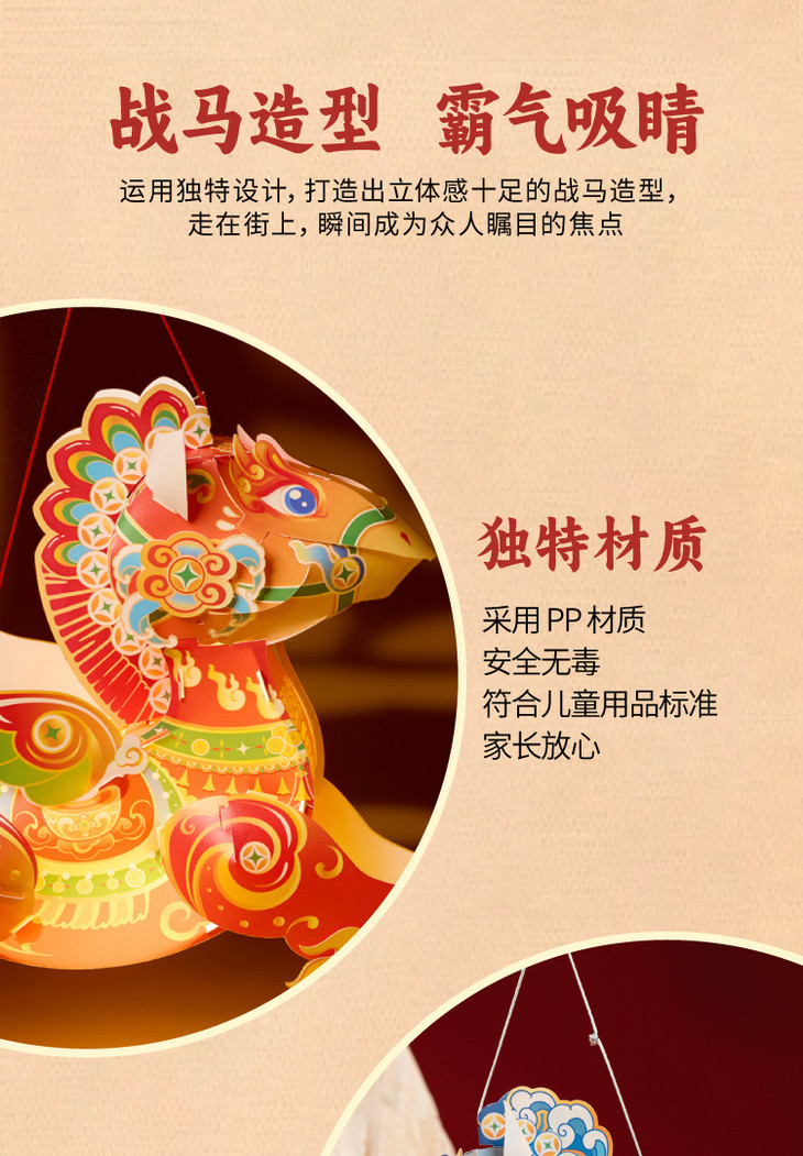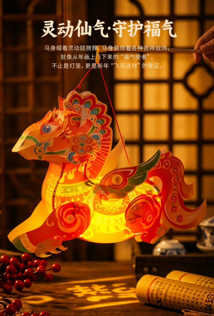 【非遗国潮🔥马年手提战马灯】送灯送杆,传统底蕴,文化传承,灵动仙气,守护福气!手工DIY材料幼儿园益智手持发光花灯笼马年闹元宵2026