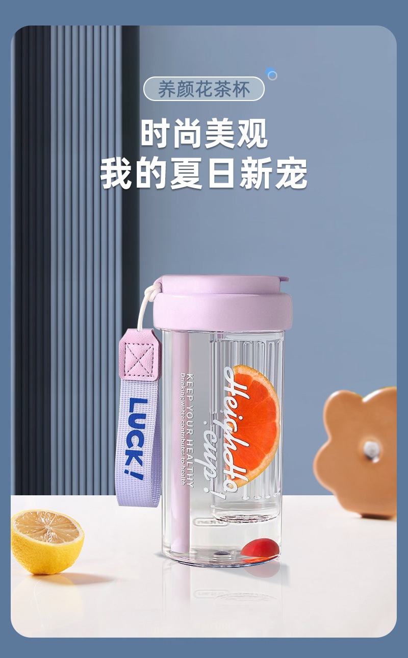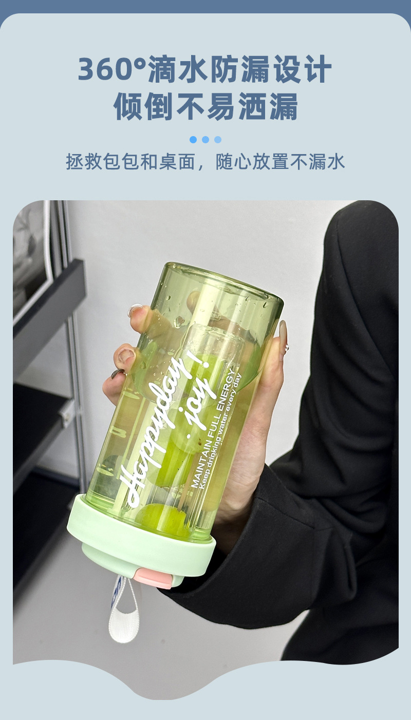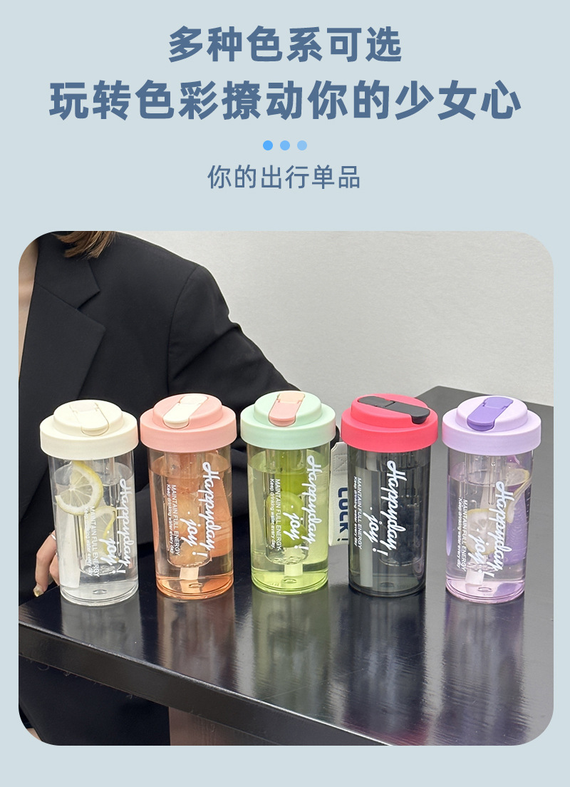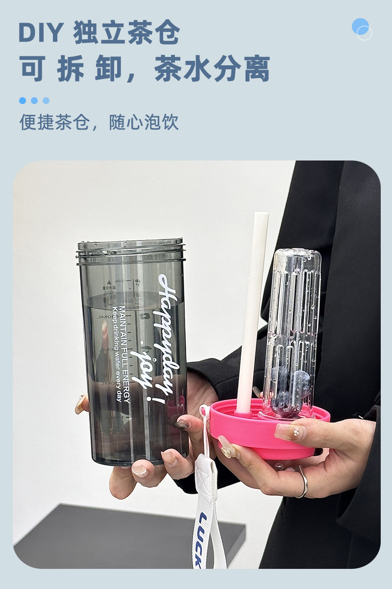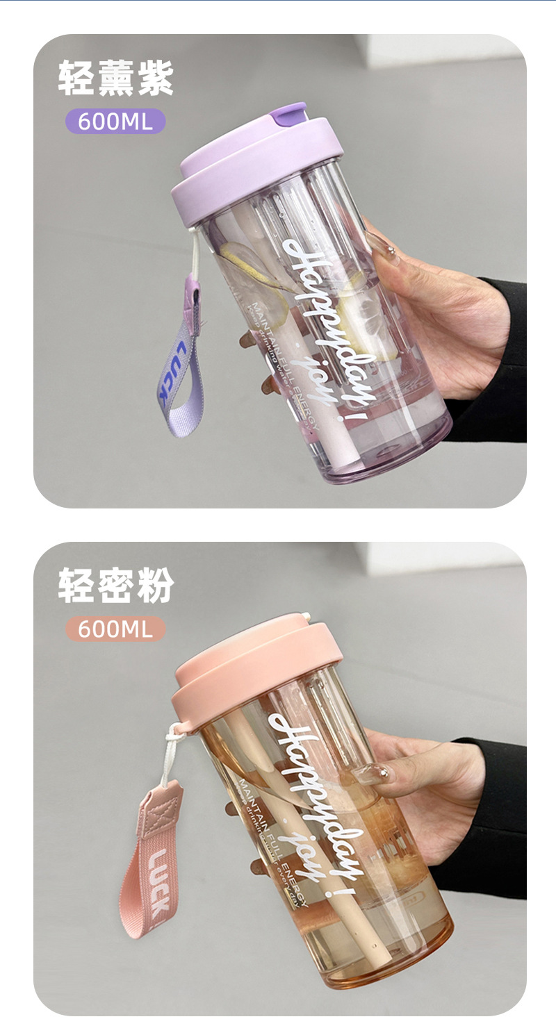 简约高颜值大容量泡茶塑料杯男女生户外便携提手吸管杯耐高温水杯