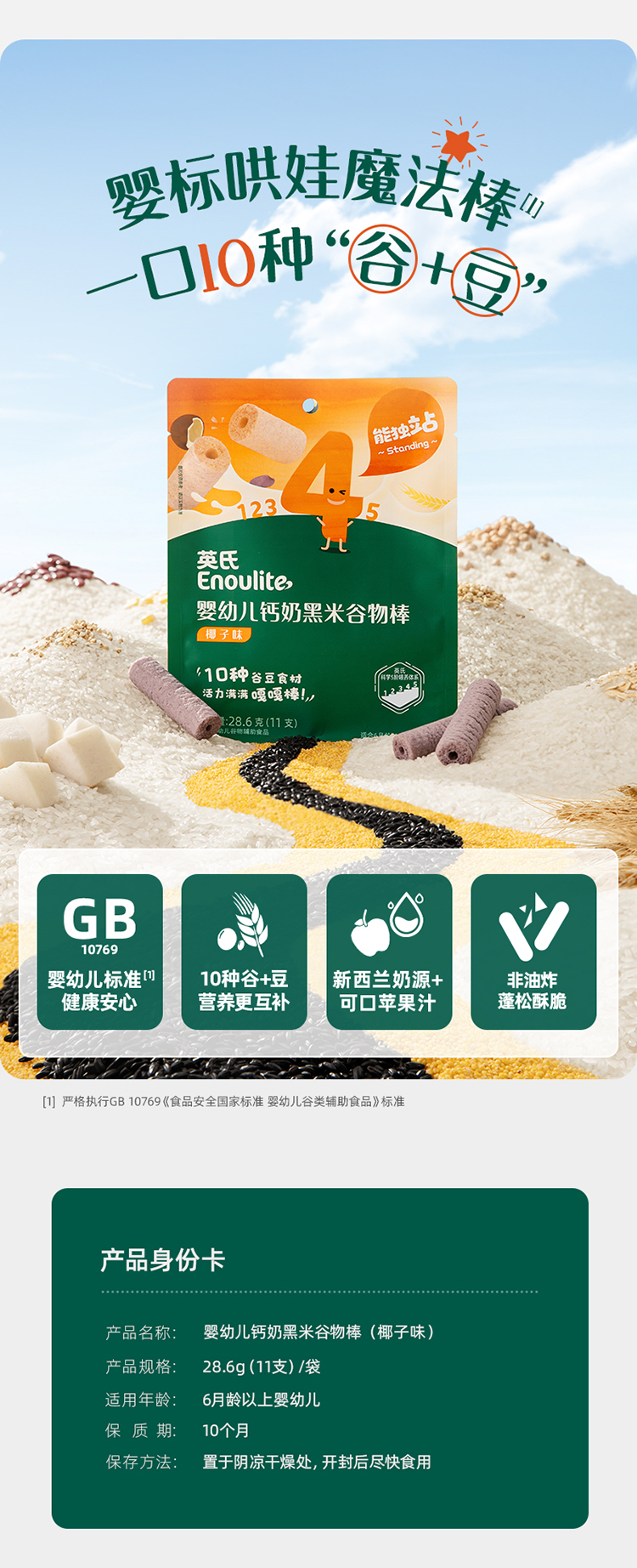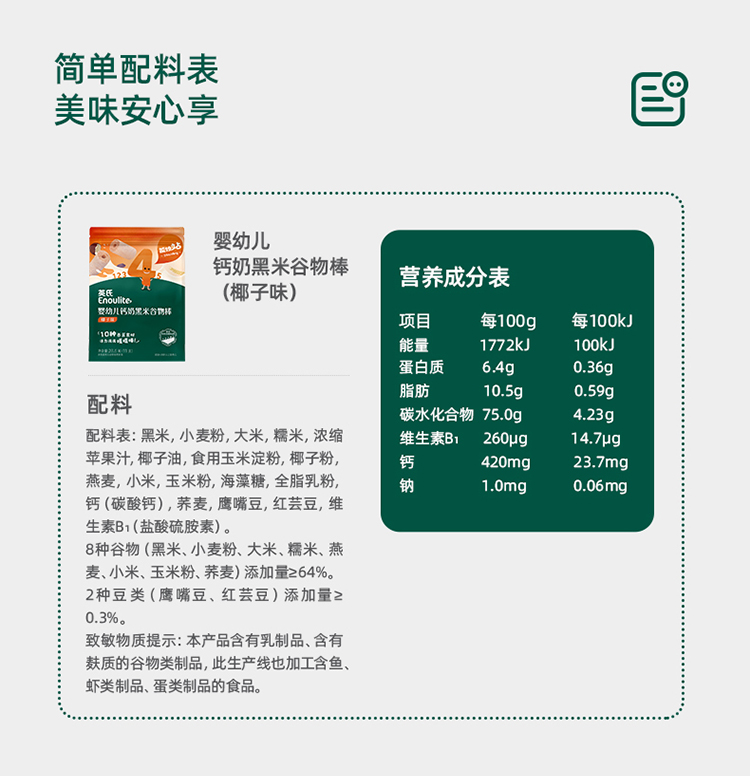 英氏婴幼儿钙奶糙米谷物棒(蛋黄香芋味/椰子味)28.6g