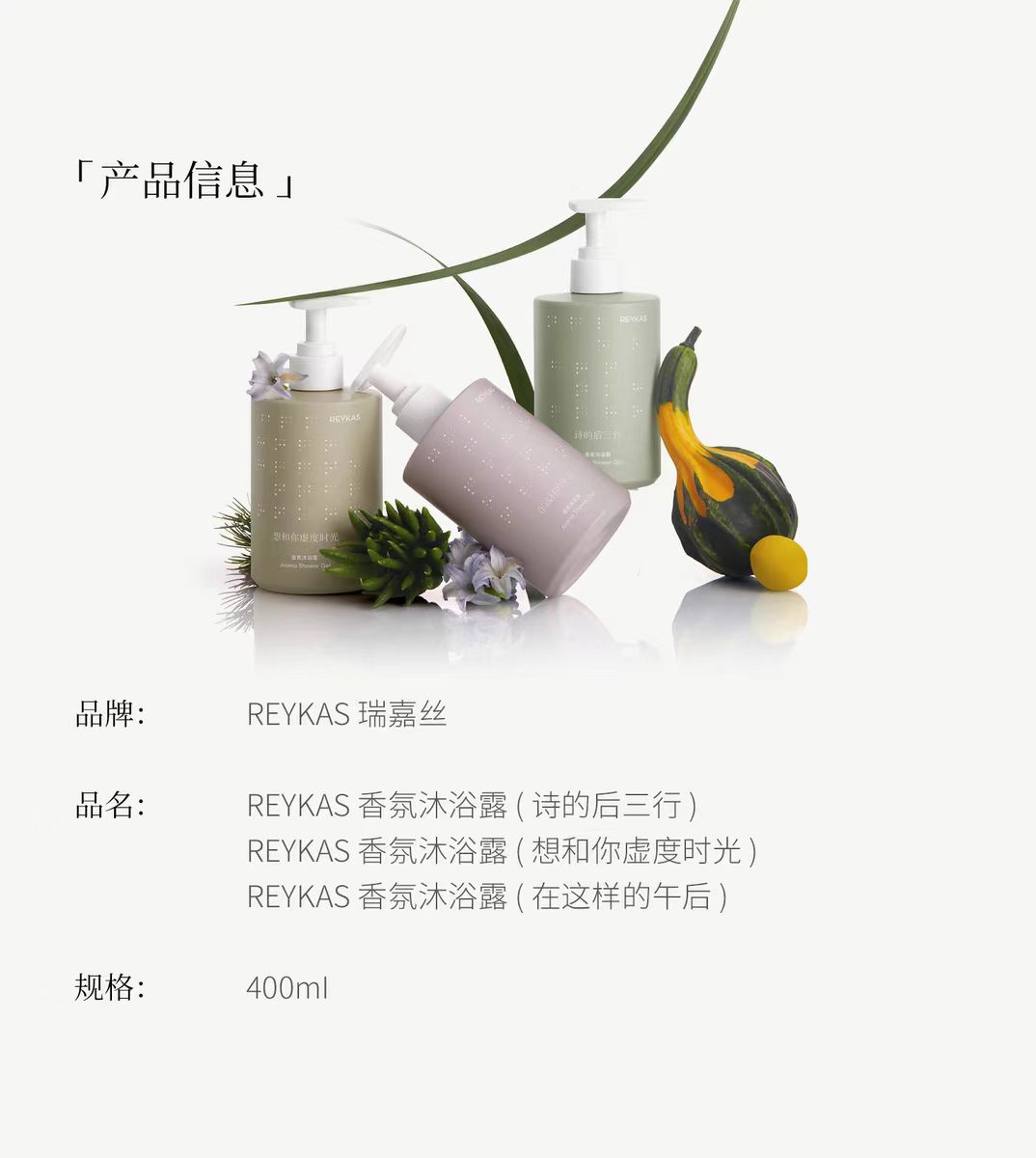 4楼Eubelle欧蓓 Reykas瑞嘉丝香氛沐浴露400ml 持久留香 温和清洁 活动价:99元