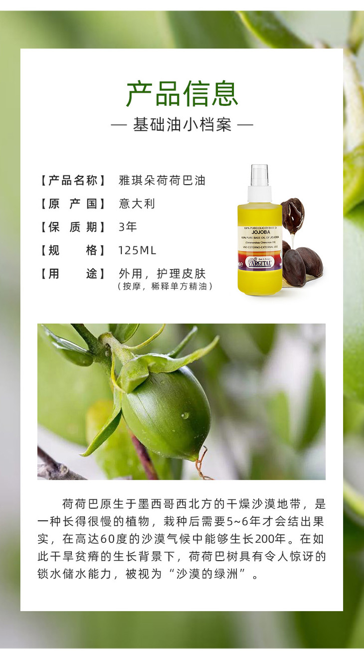 雅琪朵:荷荷巴油125ml 美白保湿锁水清爽滋润淡化皱纹基础油