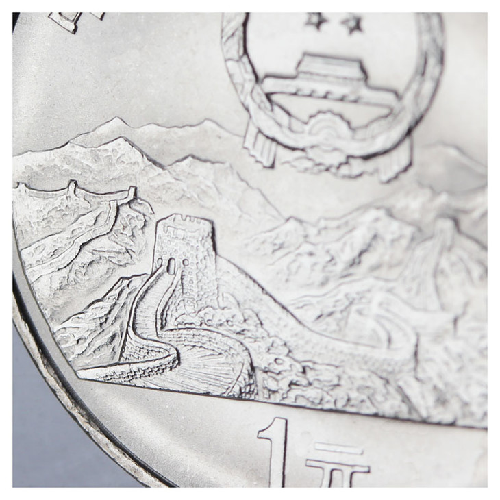▲纪念币高清细节:国徽、万里长城