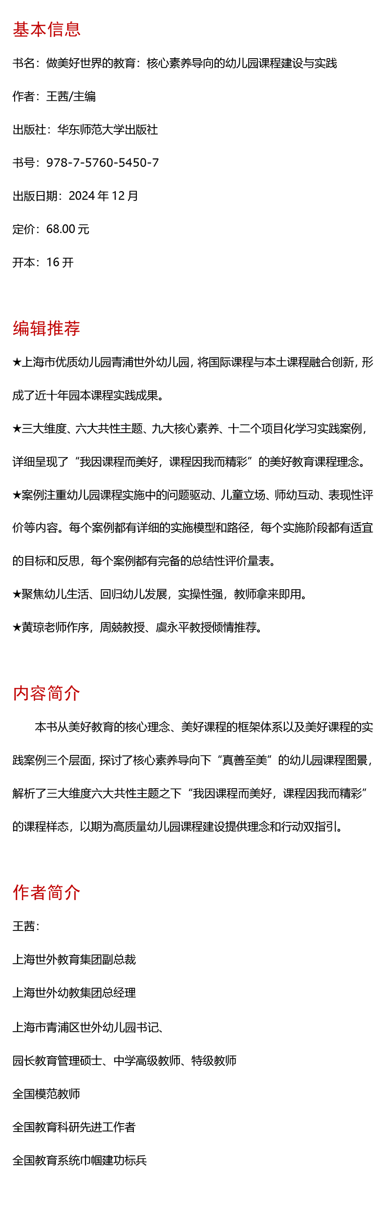 做美好世界的教育 核心素养导向的幼儿园课程建设与实践 王茜 徐俭 儿童发展