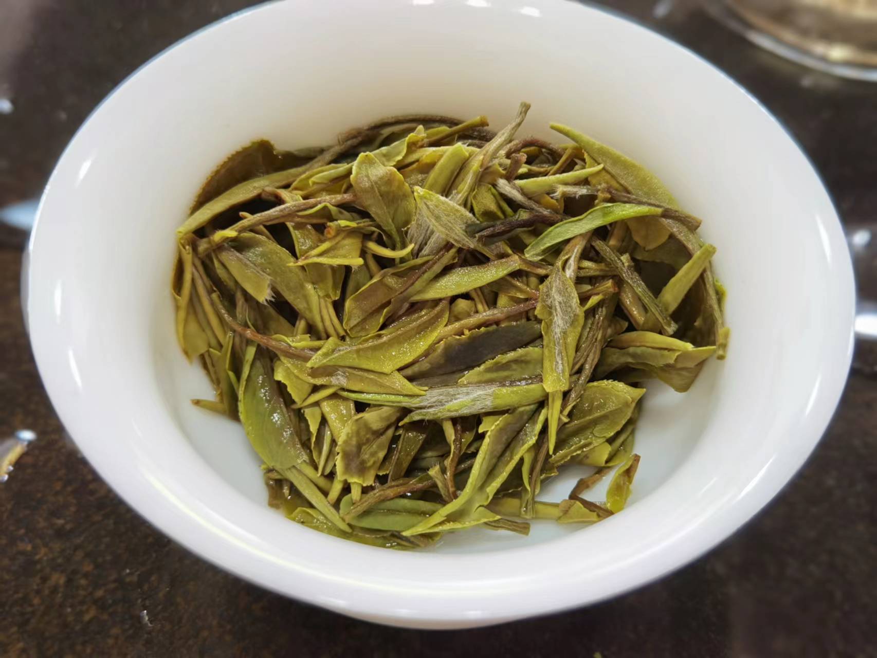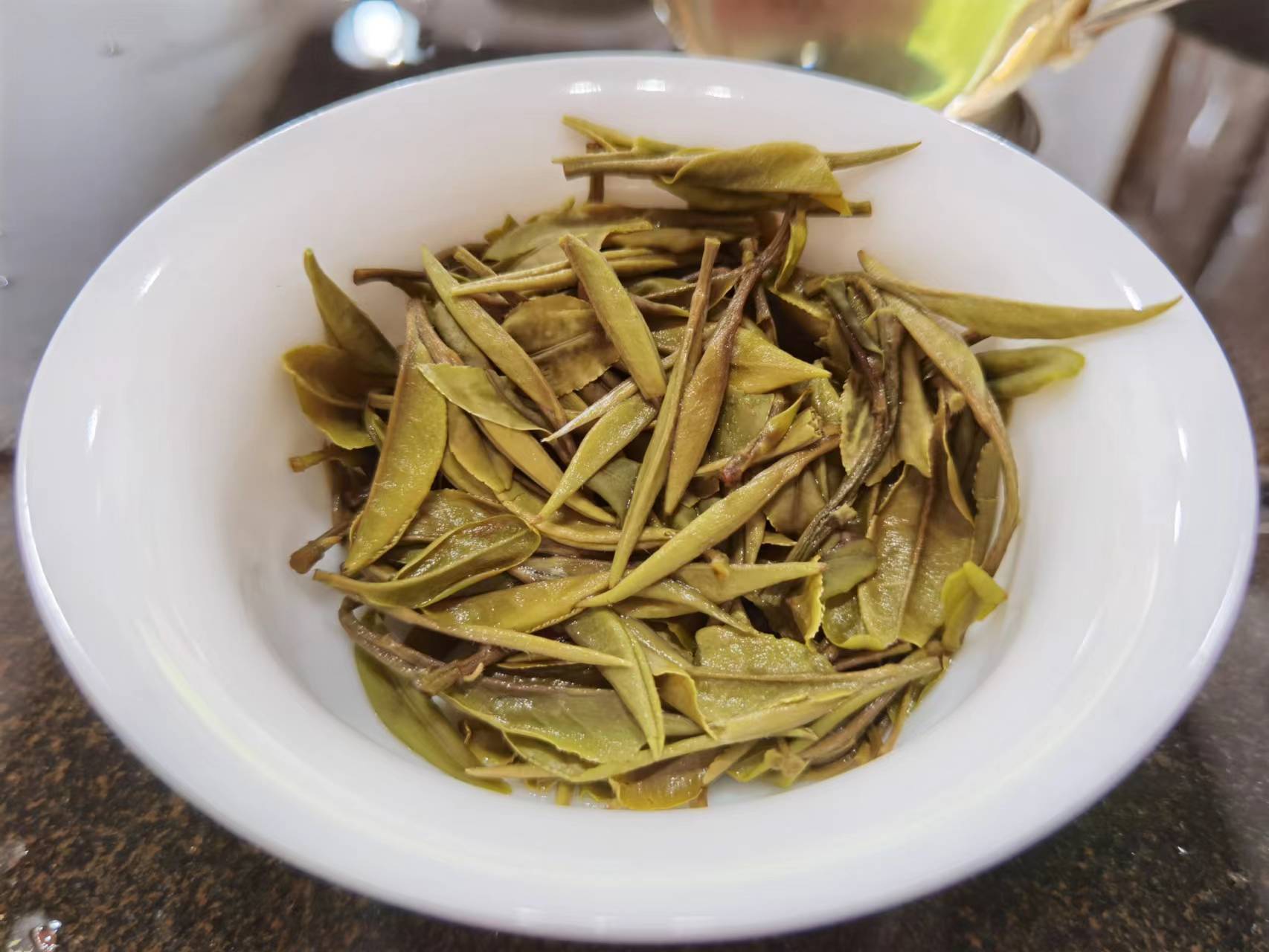 干茶微黄,芽头满毫,整体牙锋明显,毫下隐翠,叶张窄小,妥妥顶牡的状态。