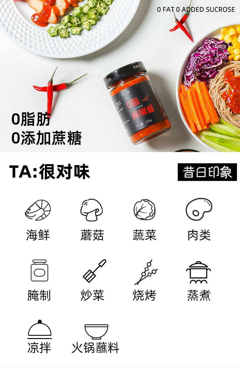 蒜蓉辣椒酱调味0低脂肪卡下饭拌饭酱低脂时光辣酱料水煮菜蘸料