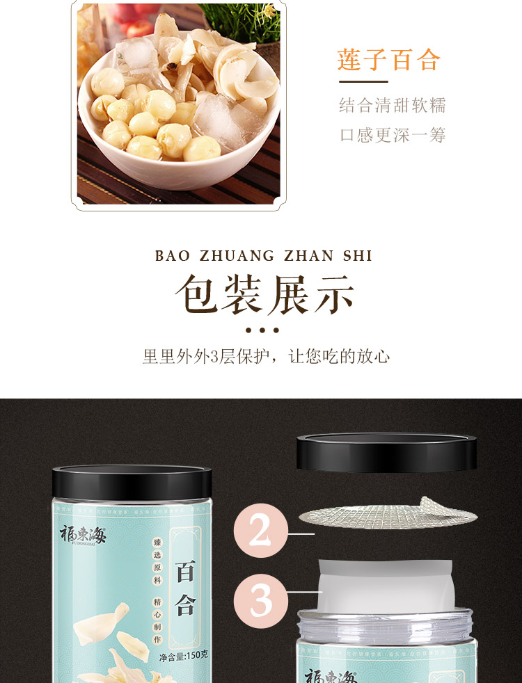 【拍1发2】福东海 百合干150克/瓶新鲜干货百合食用搭配莲子银耳干甜