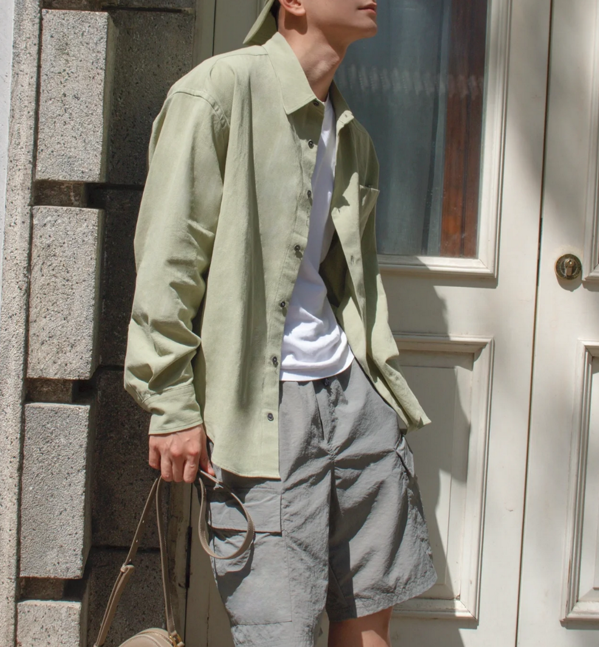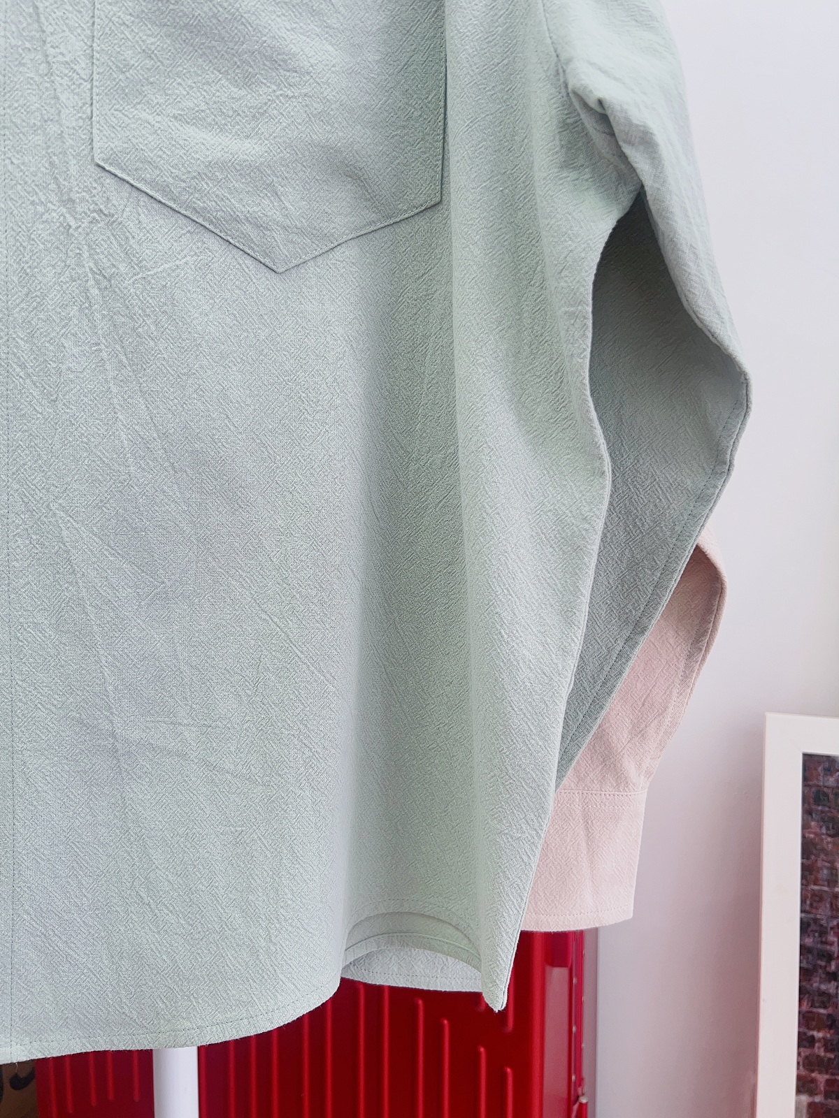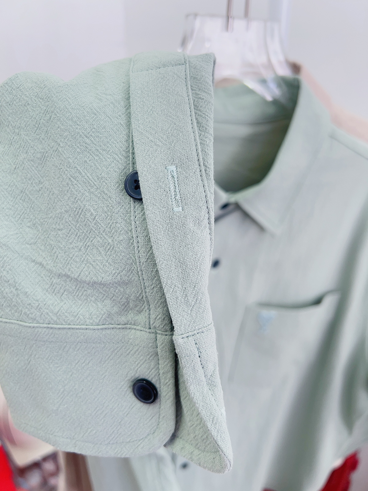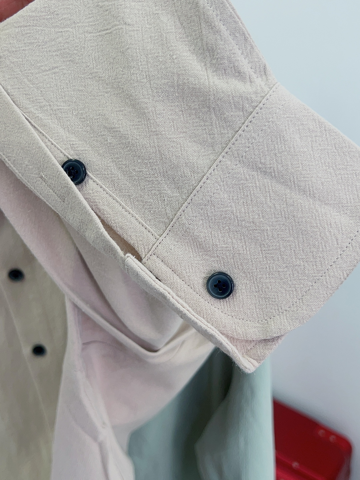 单排扣设计 前短后长,侧边带弧度;胸口处单口