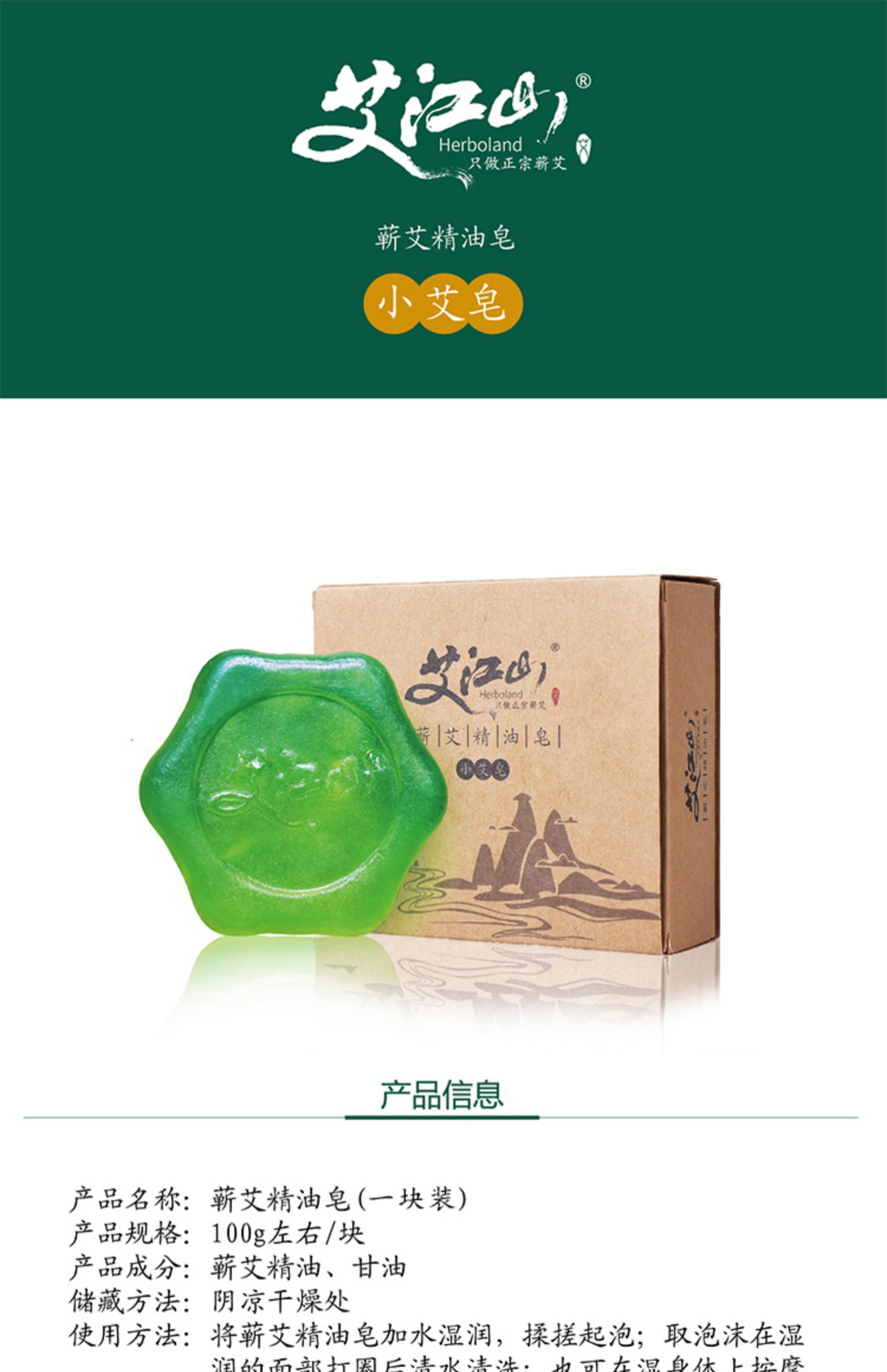 【艾江山小艾皂】100g*2块 富含蕲艾精油 多功能使用 去除肌肤表面干燥老化角质 调节皮肤油脂分泌 洗完脸部不紧绷
