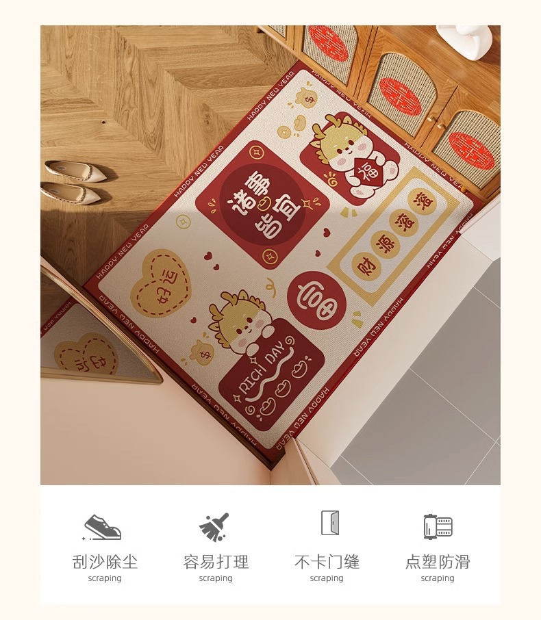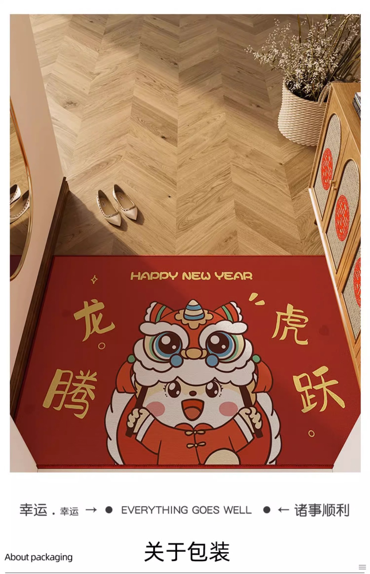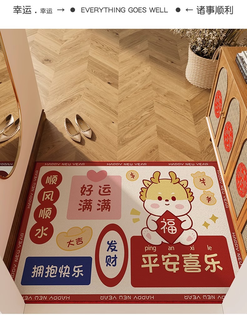 【鱼跃蛇门❗️诸事皆宜蛇年地垫】新年发财卡通印花红色喜庆门垫家用入户门防滑蛇年丝圈地垫好礼特价新年礼盒年货礼盒