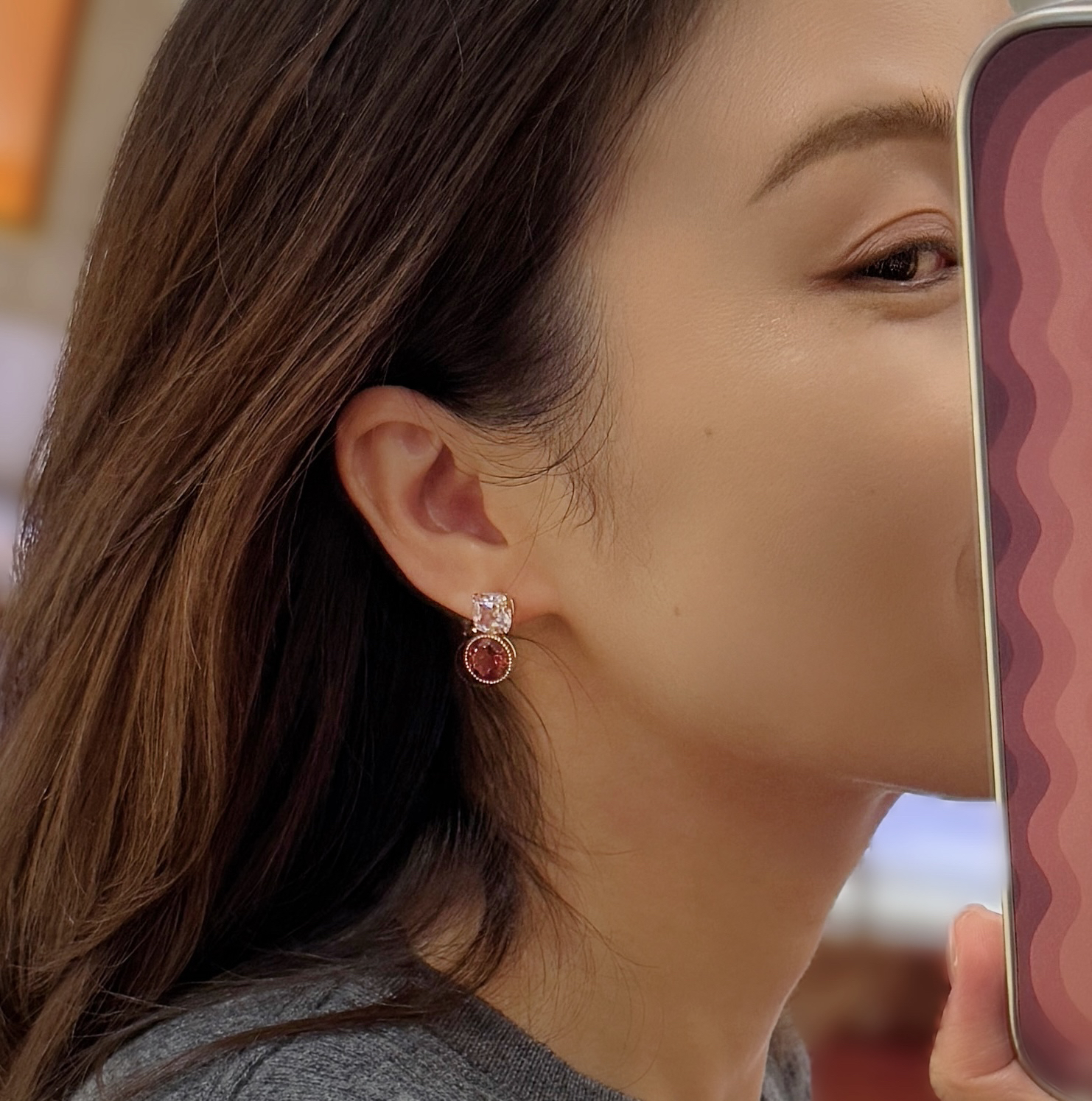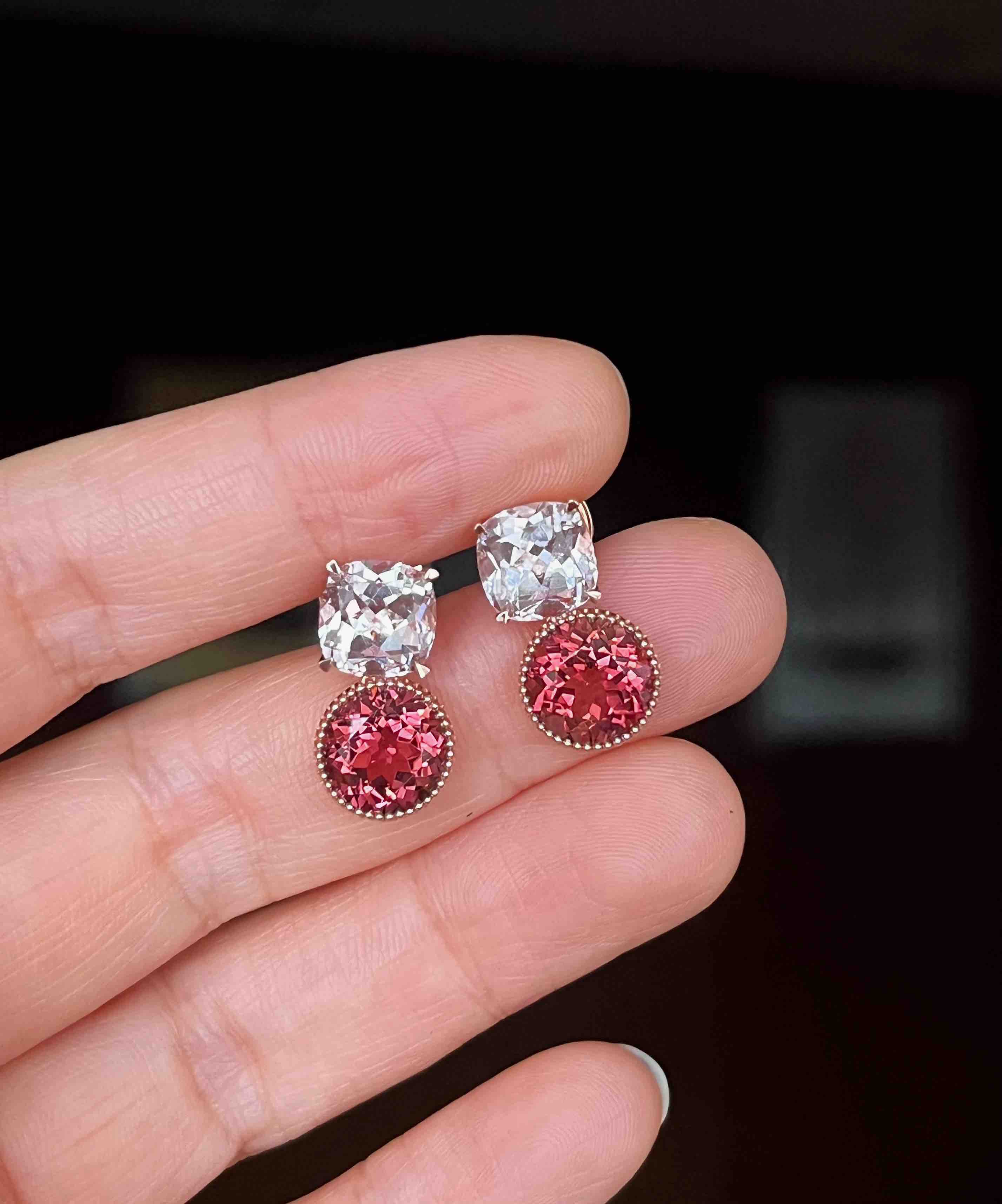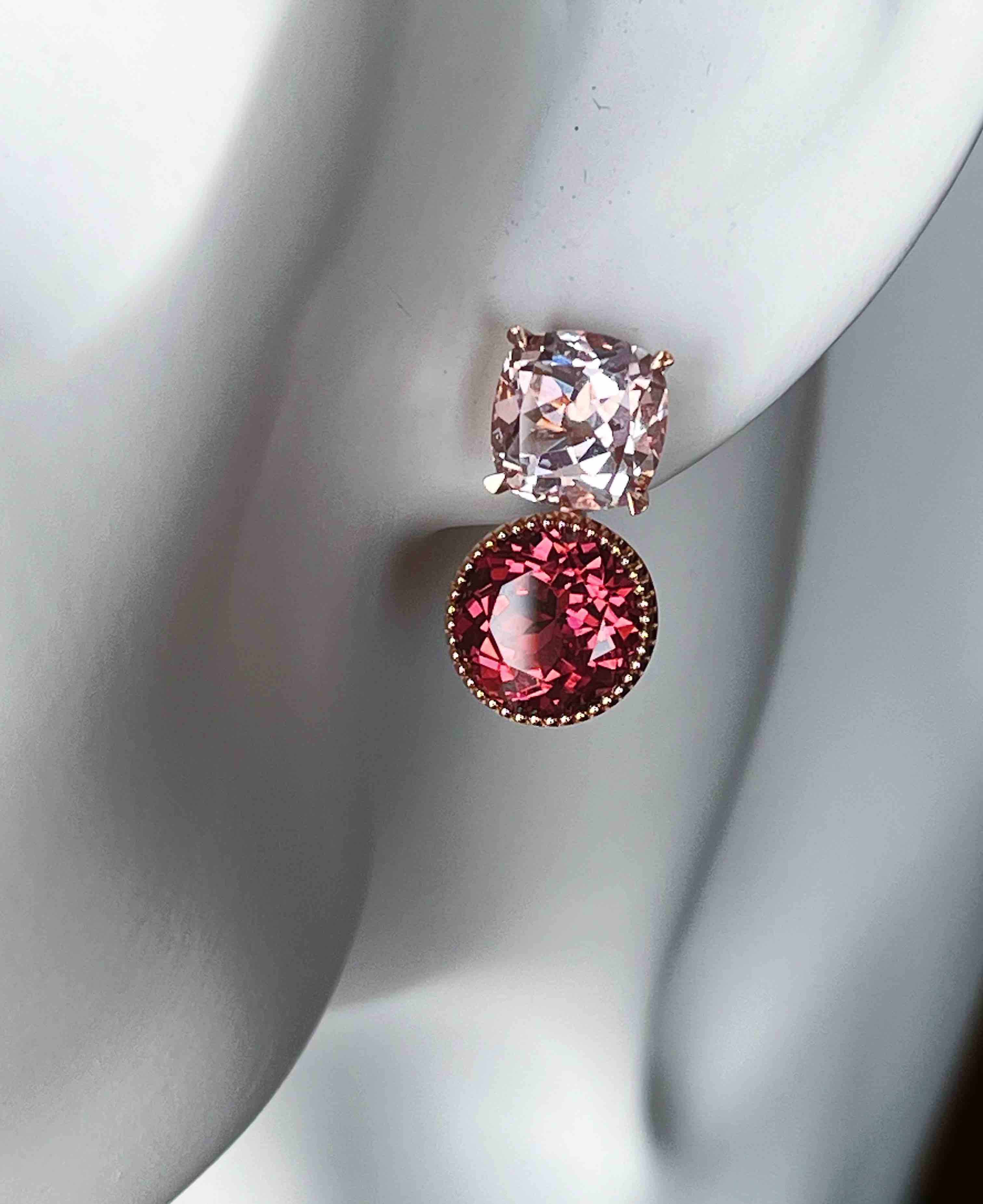 作品名称:18K镶摩根石和碧玺耳钉