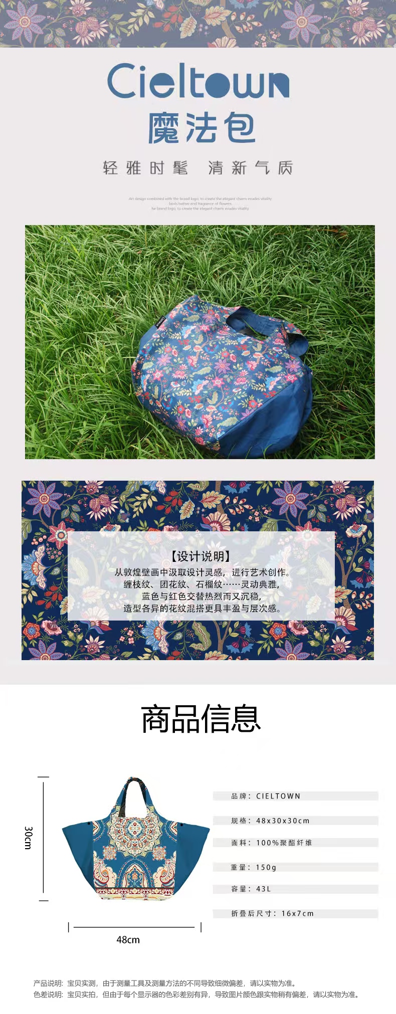 4楼Eubelle欧蓓 Cieltown/夏尔小镇联名防水多功能魔法包 健身旅行包 吊牌价:99元 活动价:89元