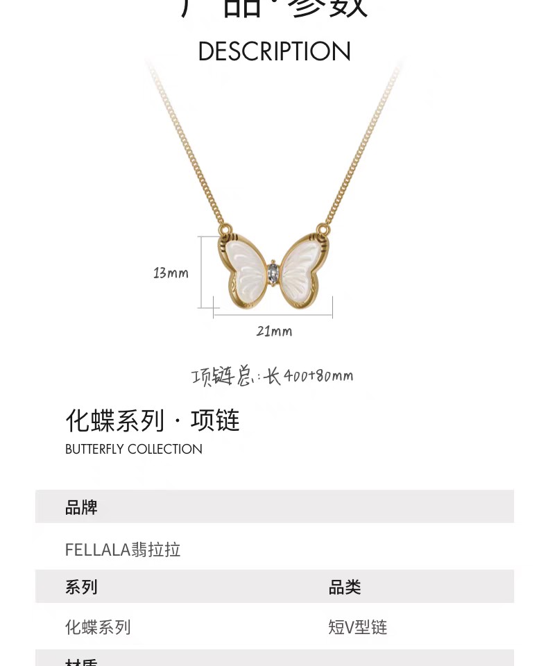 2楼「新品」Fellala/翡拉拉「化蝶」系列精致珐琅项链气质时尚颈饰货号925419205吊牌价899现价809