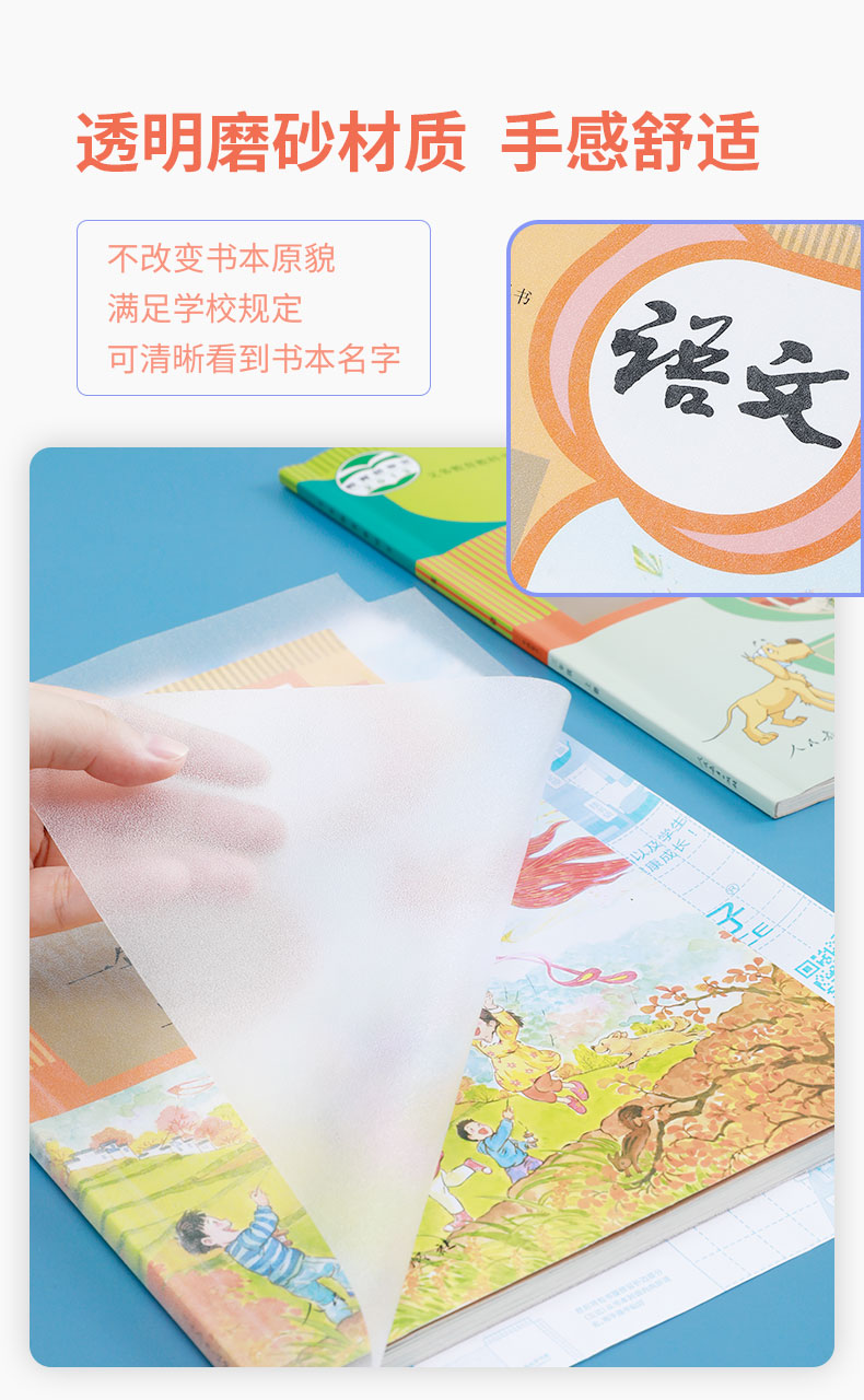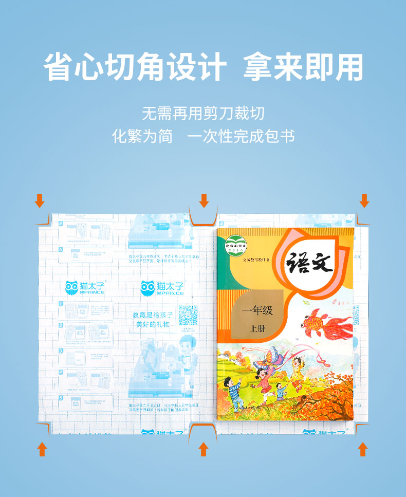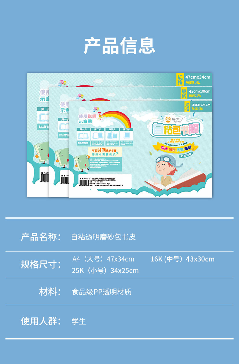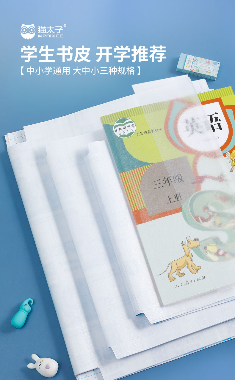 【自粘书皮】猫太子自粘书皮包膜套装 透明磨砂 免裁剪防水防污 五星安全产品 (含3张姓名贴)
