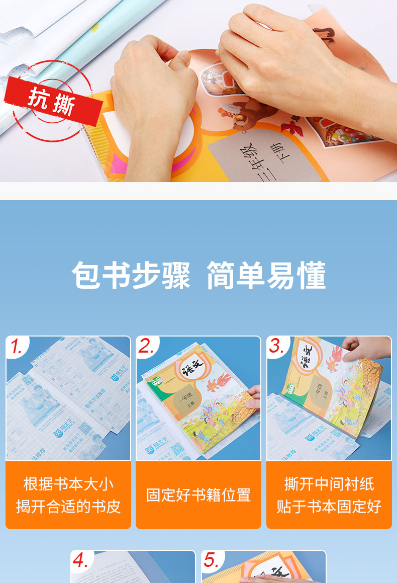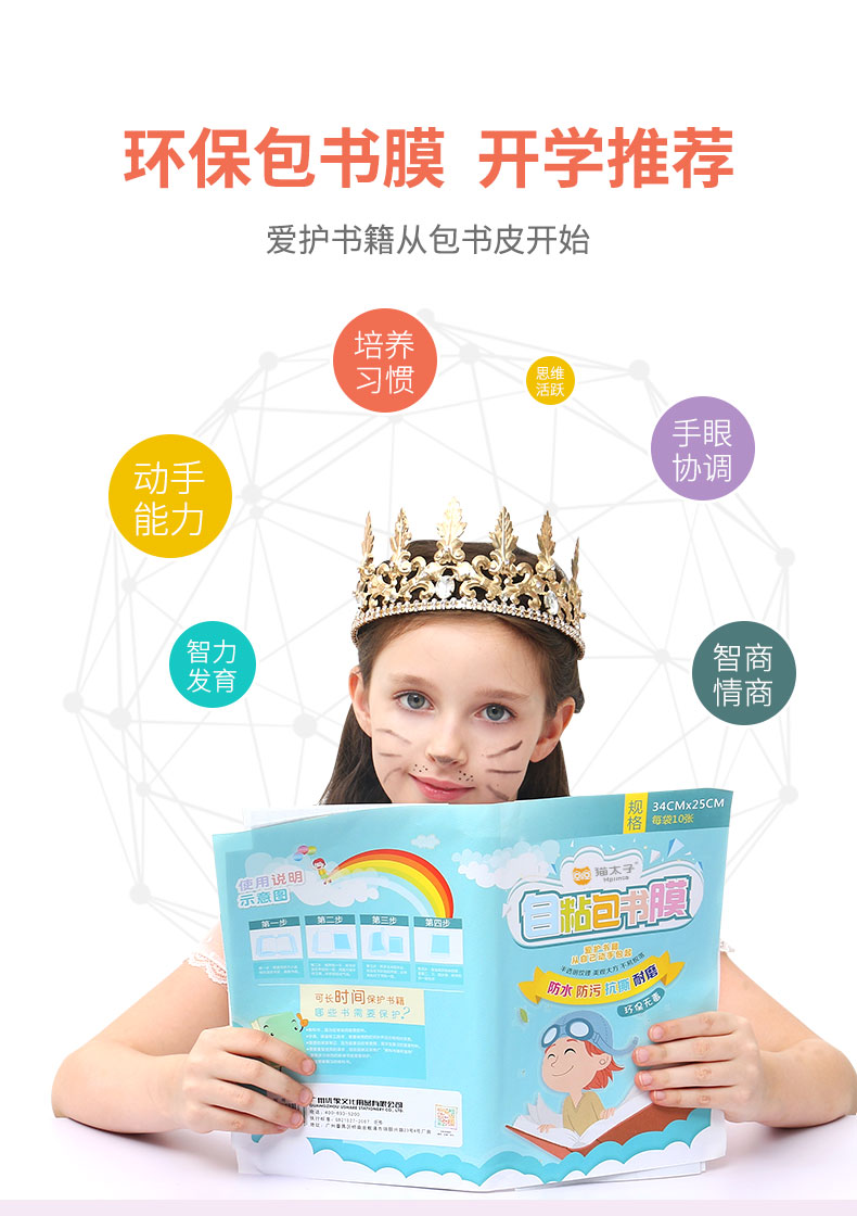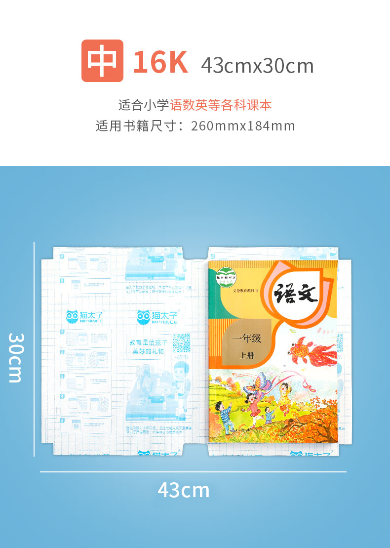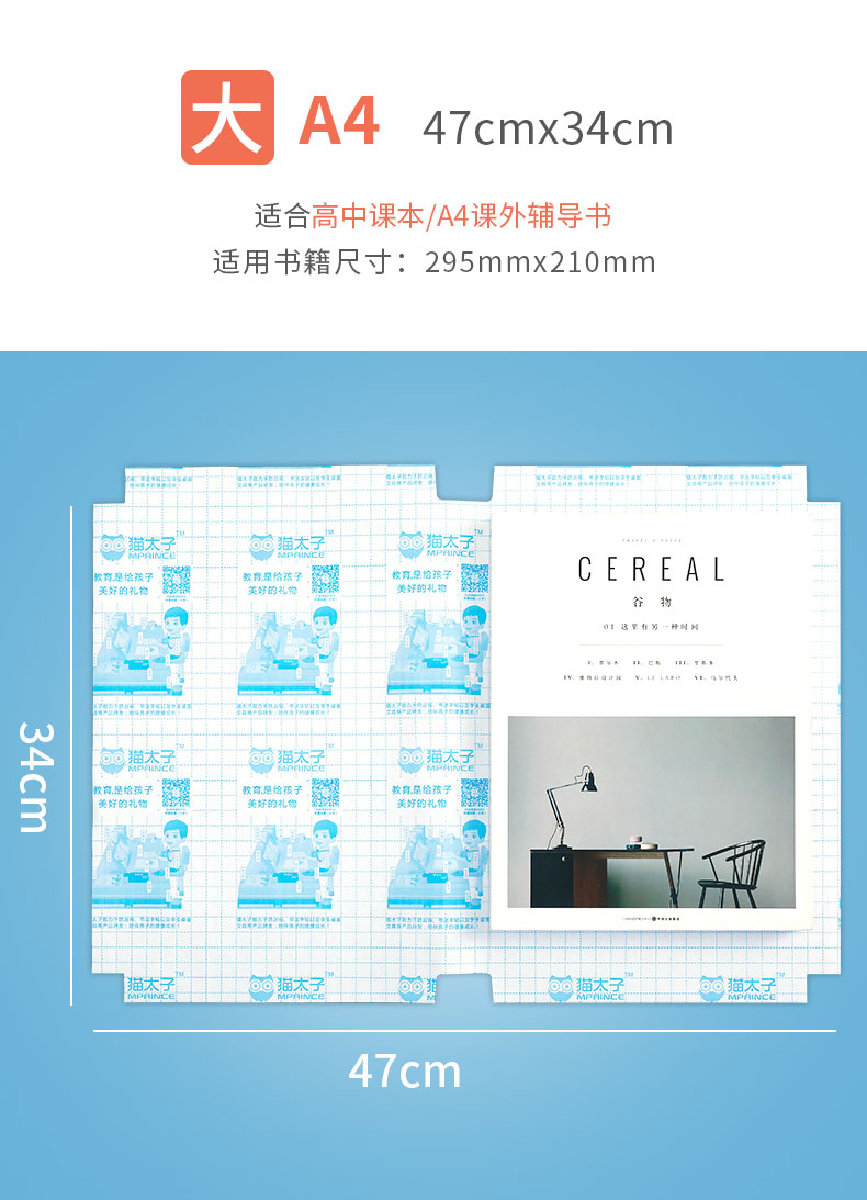 【自粘书皮】猫太子自粘书皮包膜套装 透明磨砂 免裁剪防水防污 五星安全产品 (含3张姓名贴)