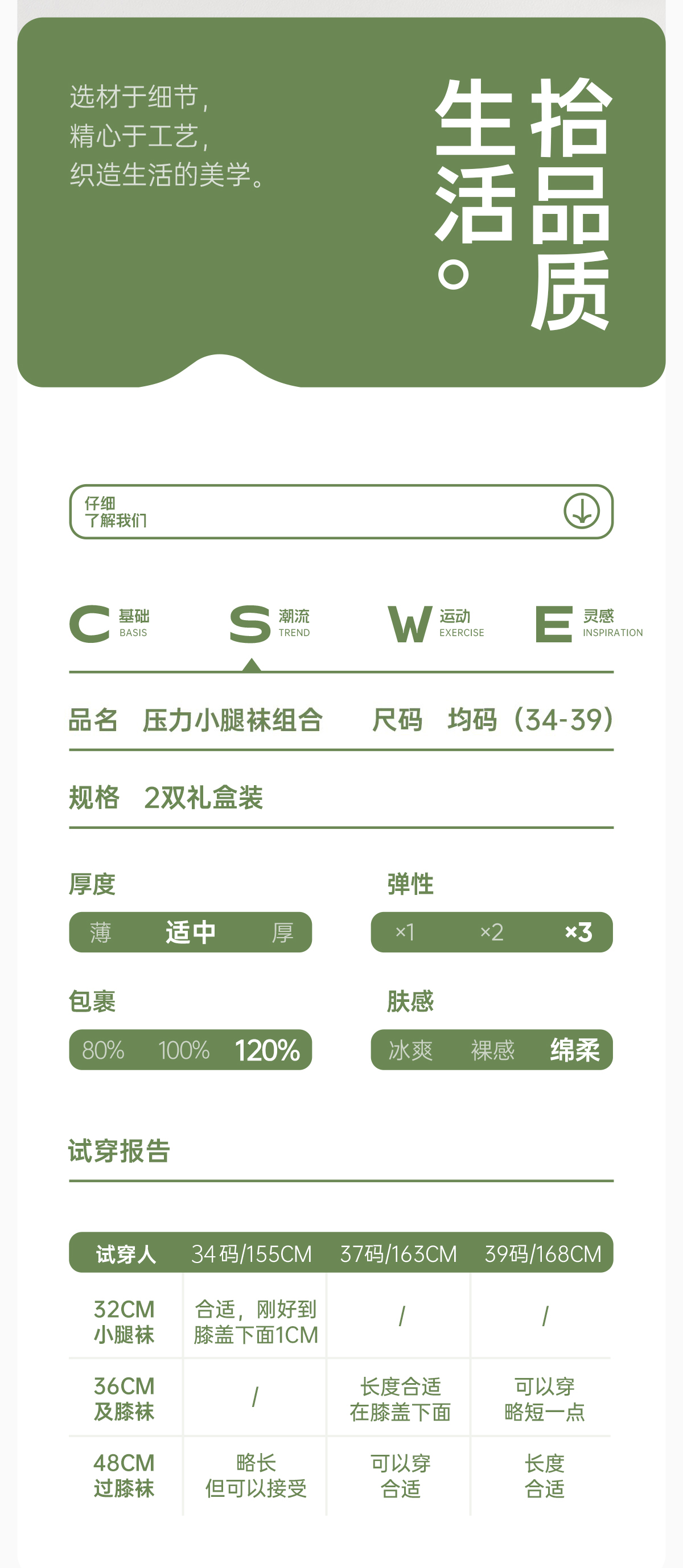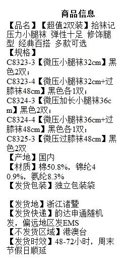 【超值2双装】拾袜记 压力小腿袜 弹性十足 修饰腿型 经典百搭 多款可选