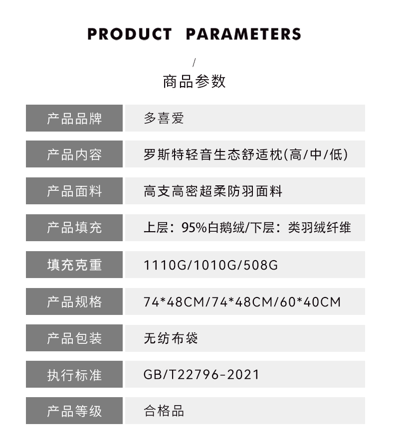 【多喜爱】枕芯--罗斯特轻音生态舒适枕(高/中/低)
