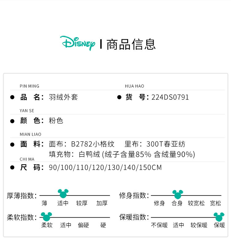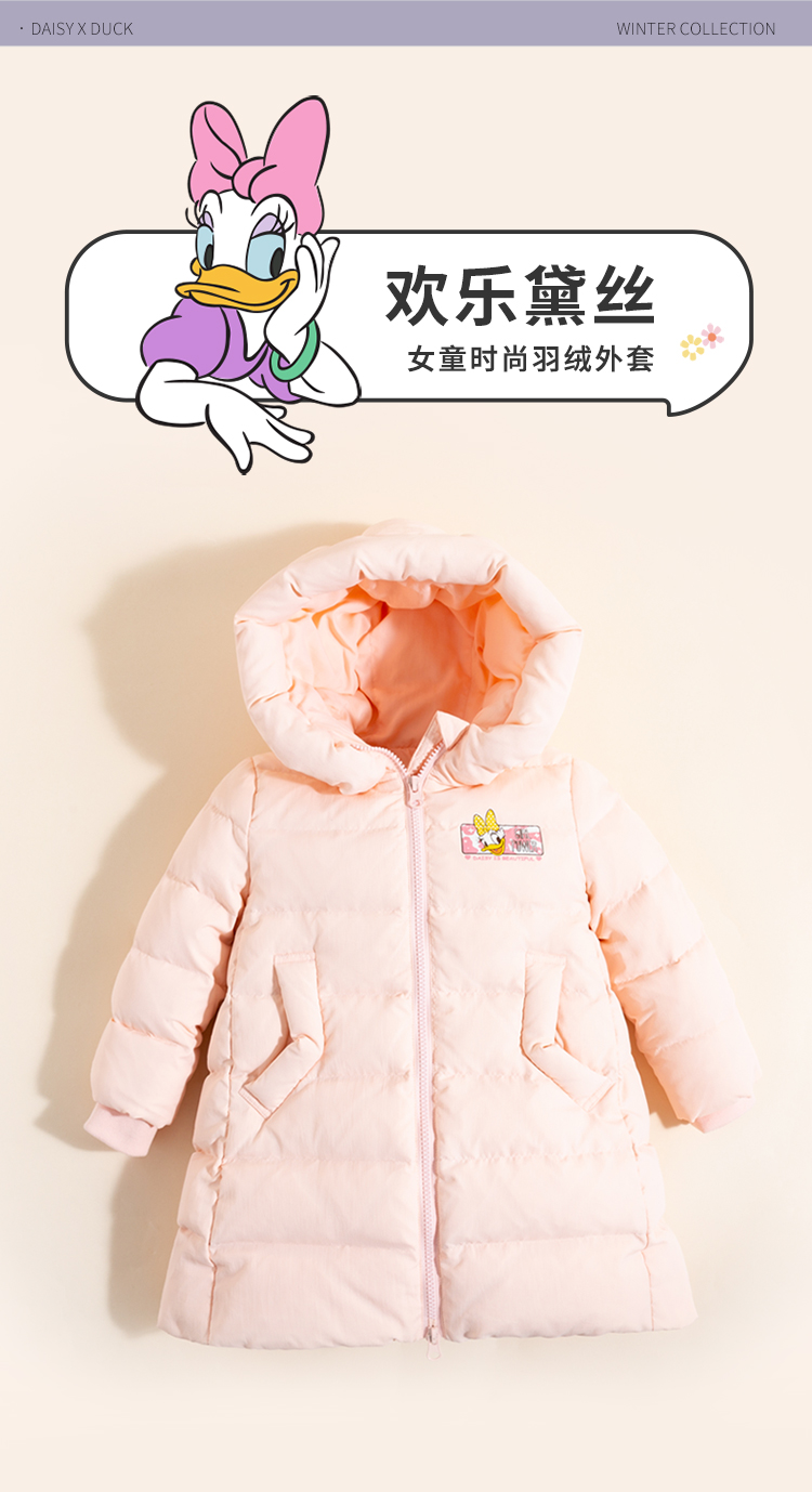 迪士尼【保暖中长款】冬季女童甜美保暖羽绒外套婴幼儿外出服厚224DS0791