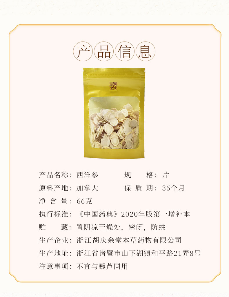 胡庆余堂 加拿大进口西洋参 简装