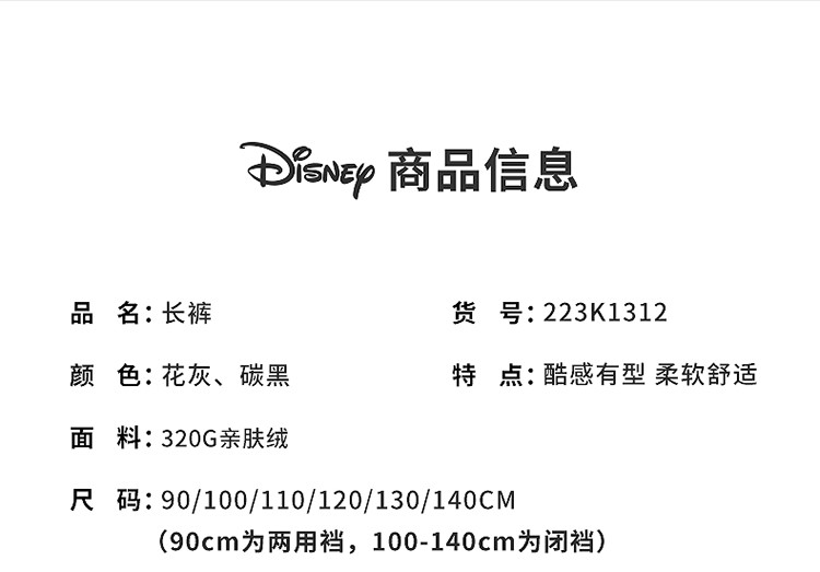 迪士尼童装秋冬新品男童加绒保暖时尚休闲长裤男宝裤子223K1312
