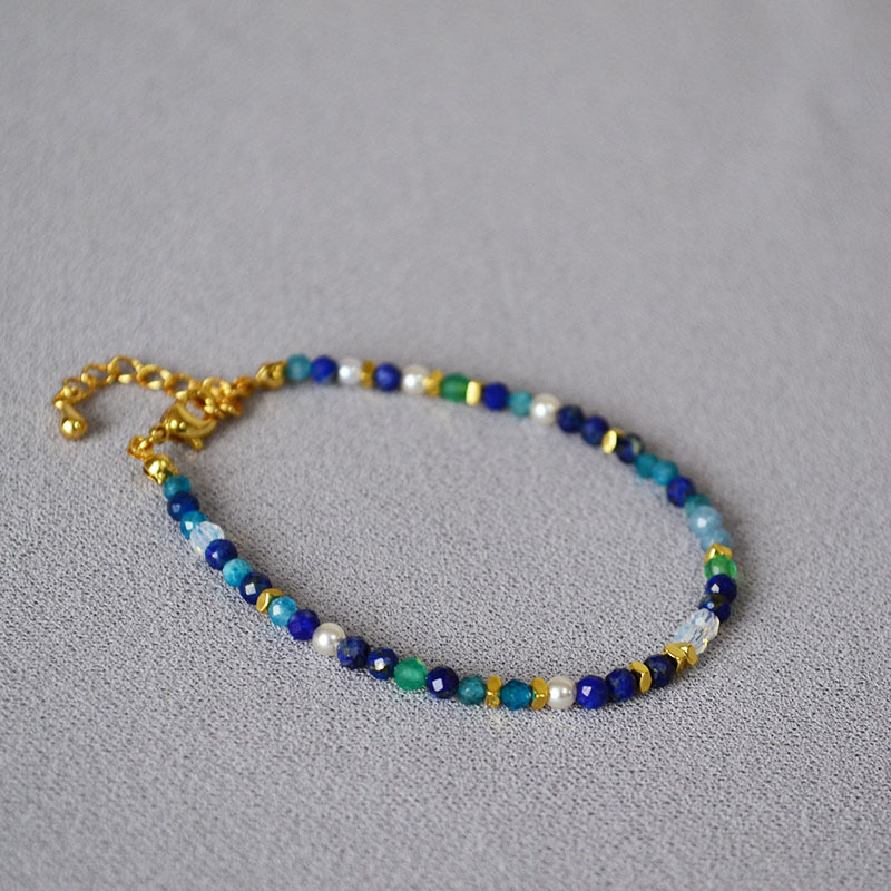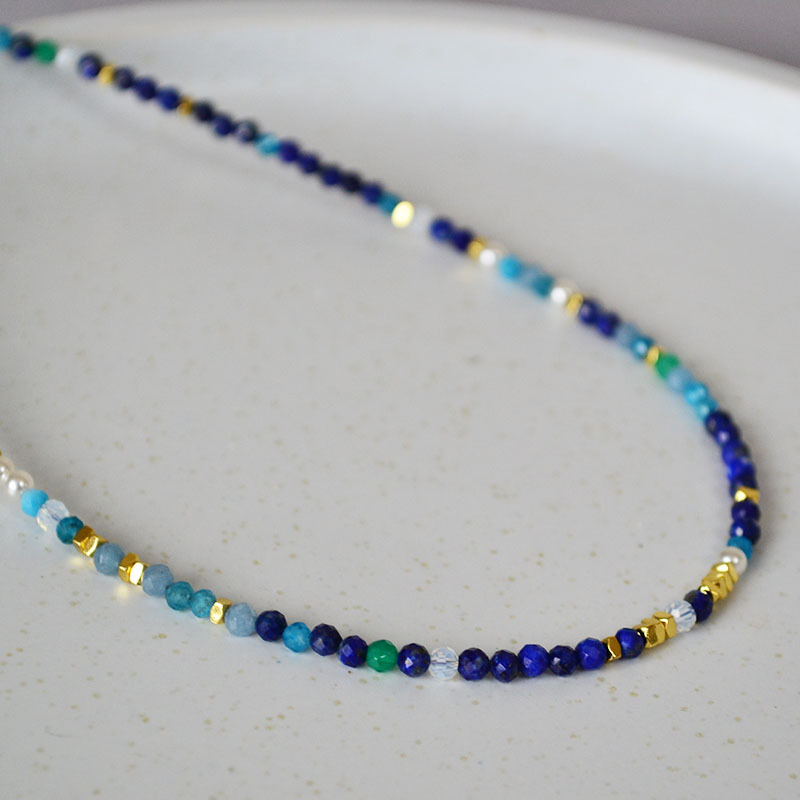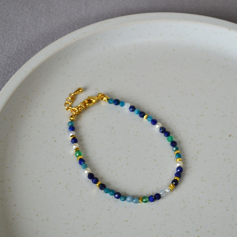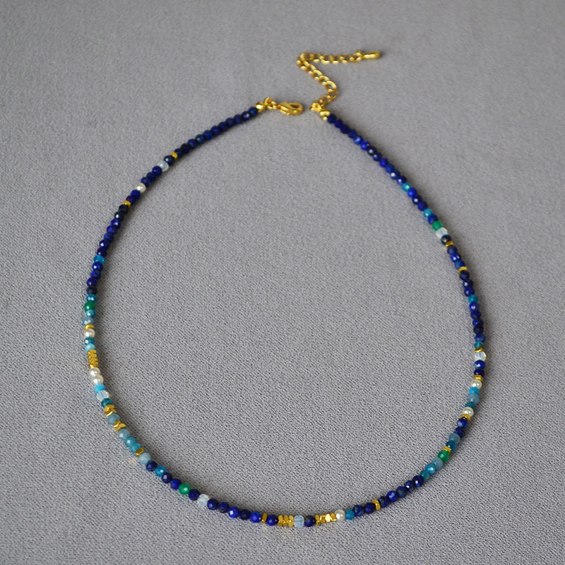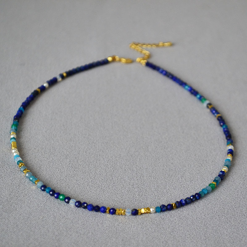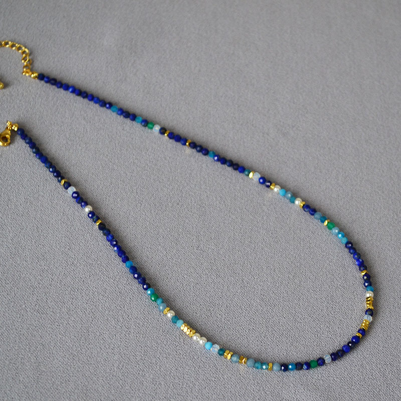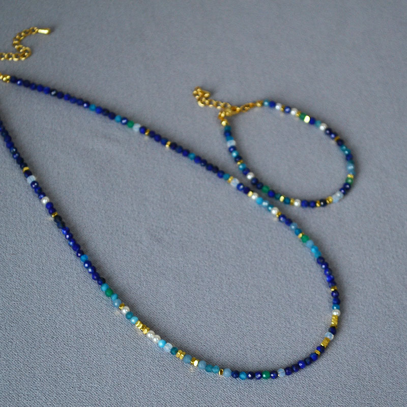 灵感来源于梵高的名画 星空,青金石色深蓝色为底,仿若夜空,点缀金色的金属,就像点点繁星,搭配衣服也很好看,把名画戴在身上,给人一种美的感受。