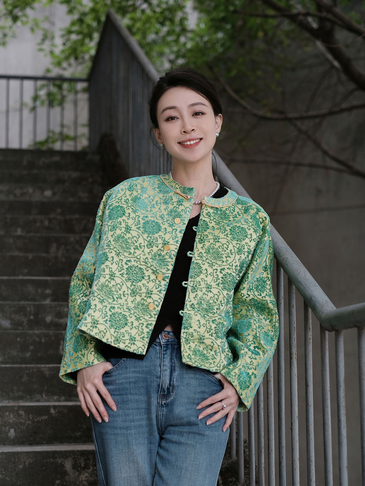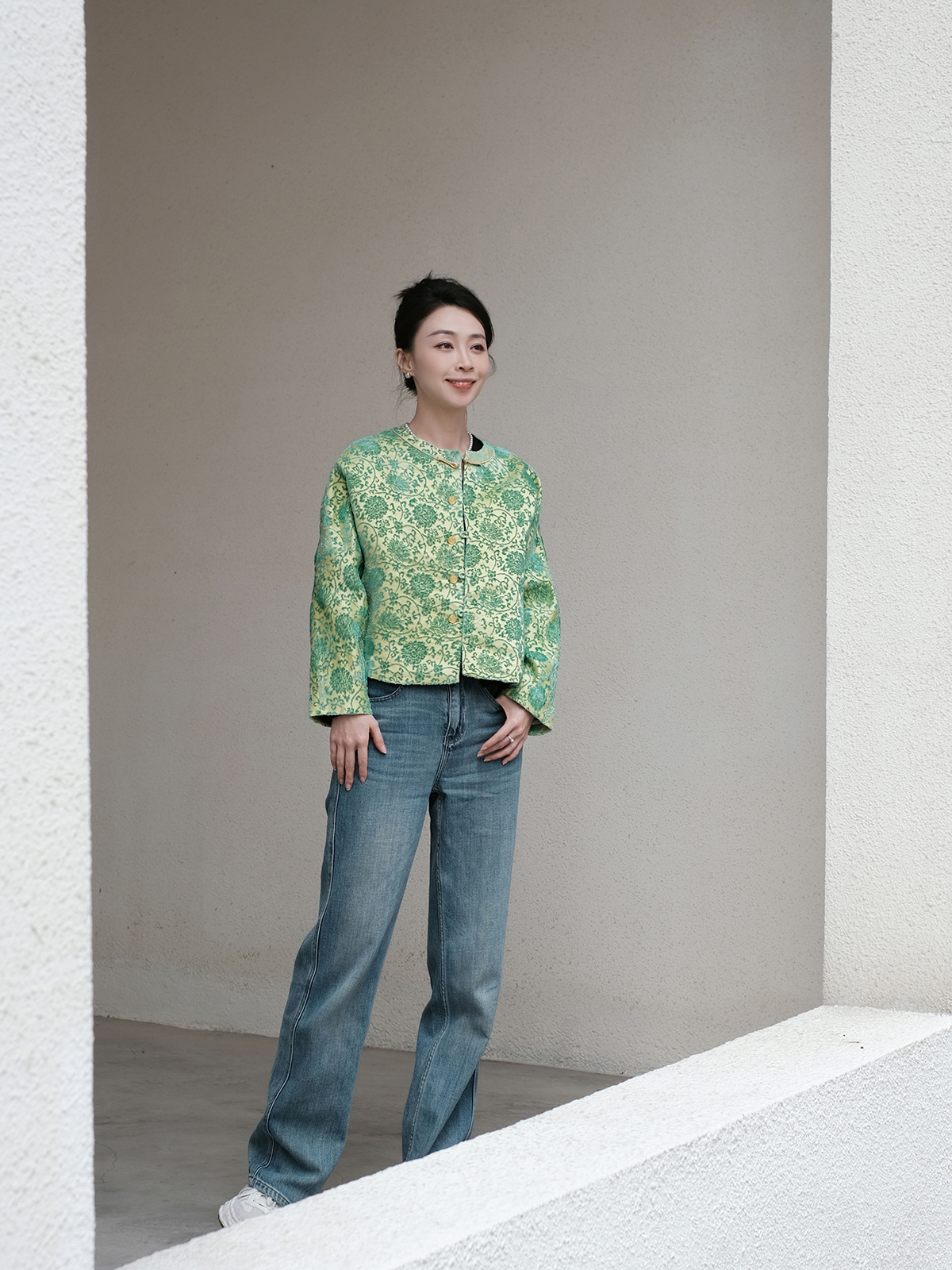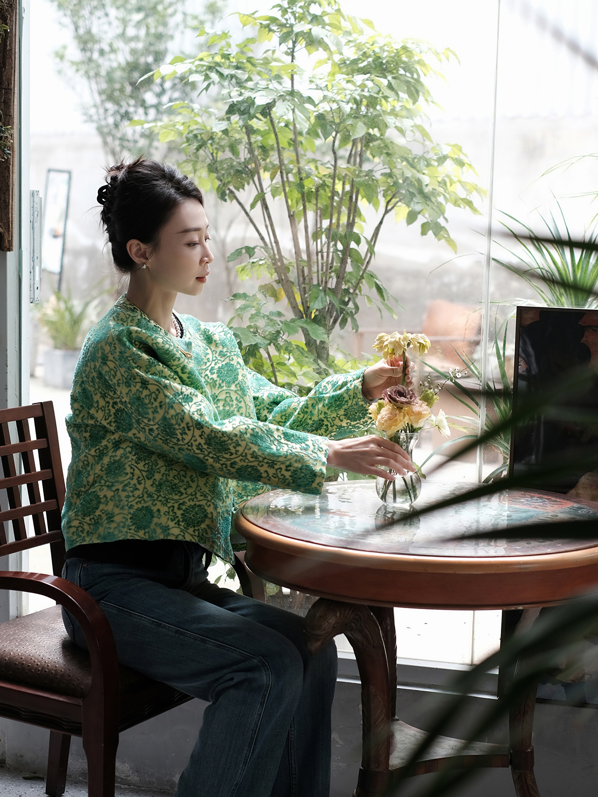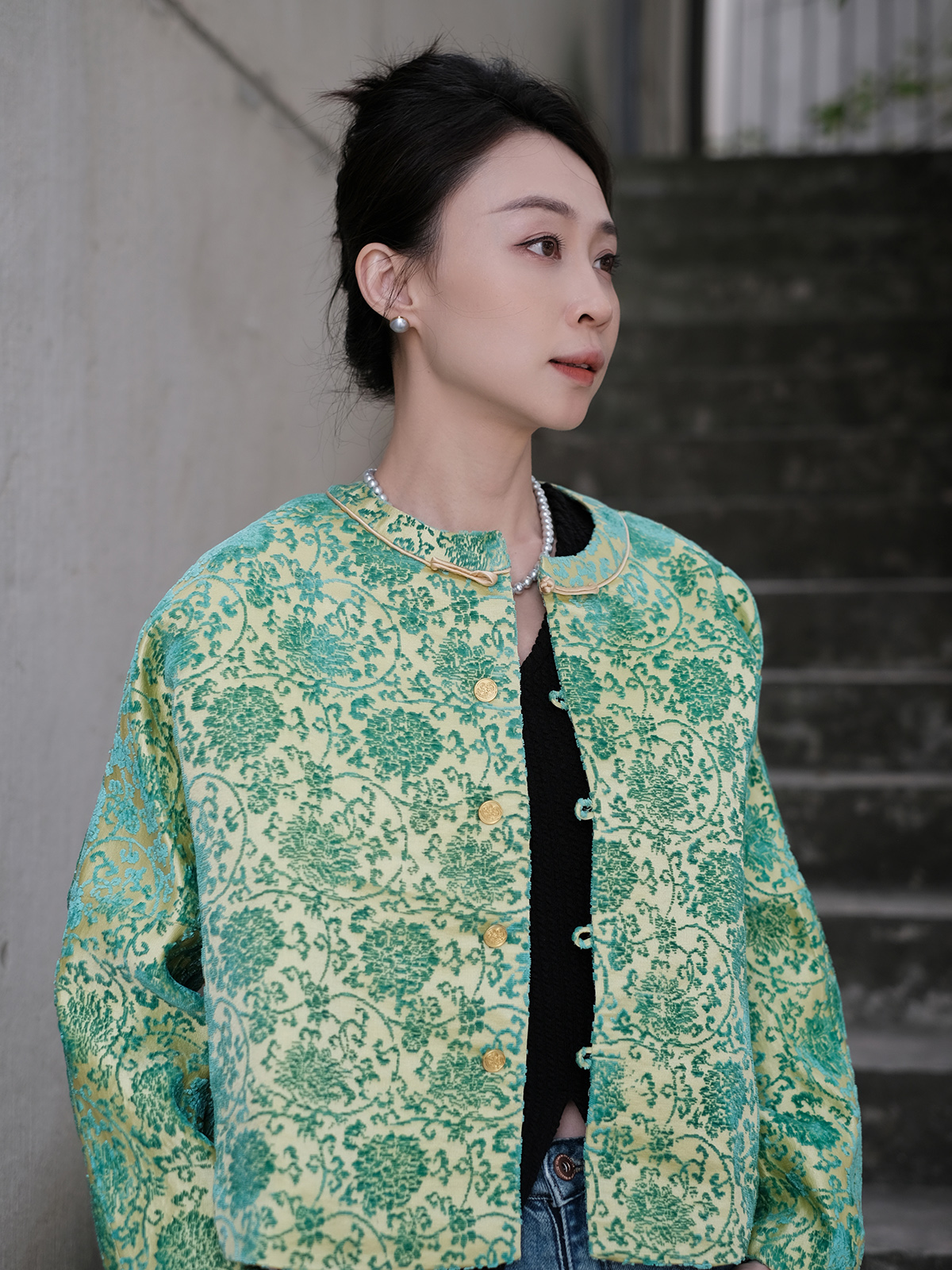 微瑕秒杀| 盛唐牡丹 |草绿色漳绒缠枝富贵花外套[特价品]](特殊商品不退不换)