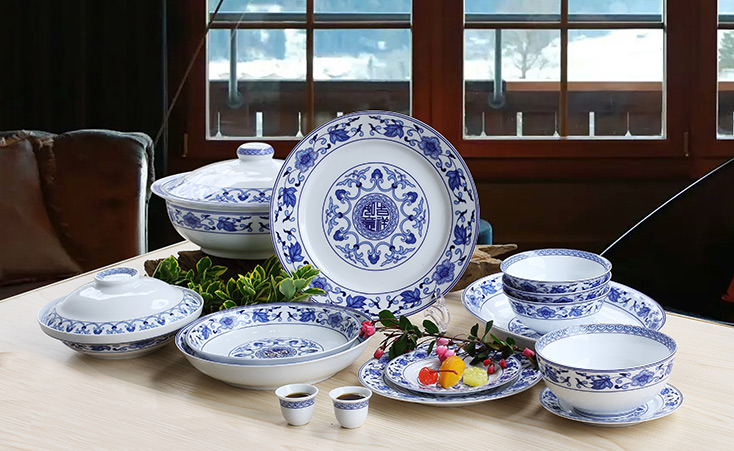 配置:饭碗10件.小弯匙10件.8寸平盘4件.8寸饭盘4件.6寸平盘10件.筷架10件.8寸盖碗2件.宽边品锅1件.6寸面碗4件.大饭匙1件.13寸深鱼盘1件.9寸饭盘2件.10寸平盘1件