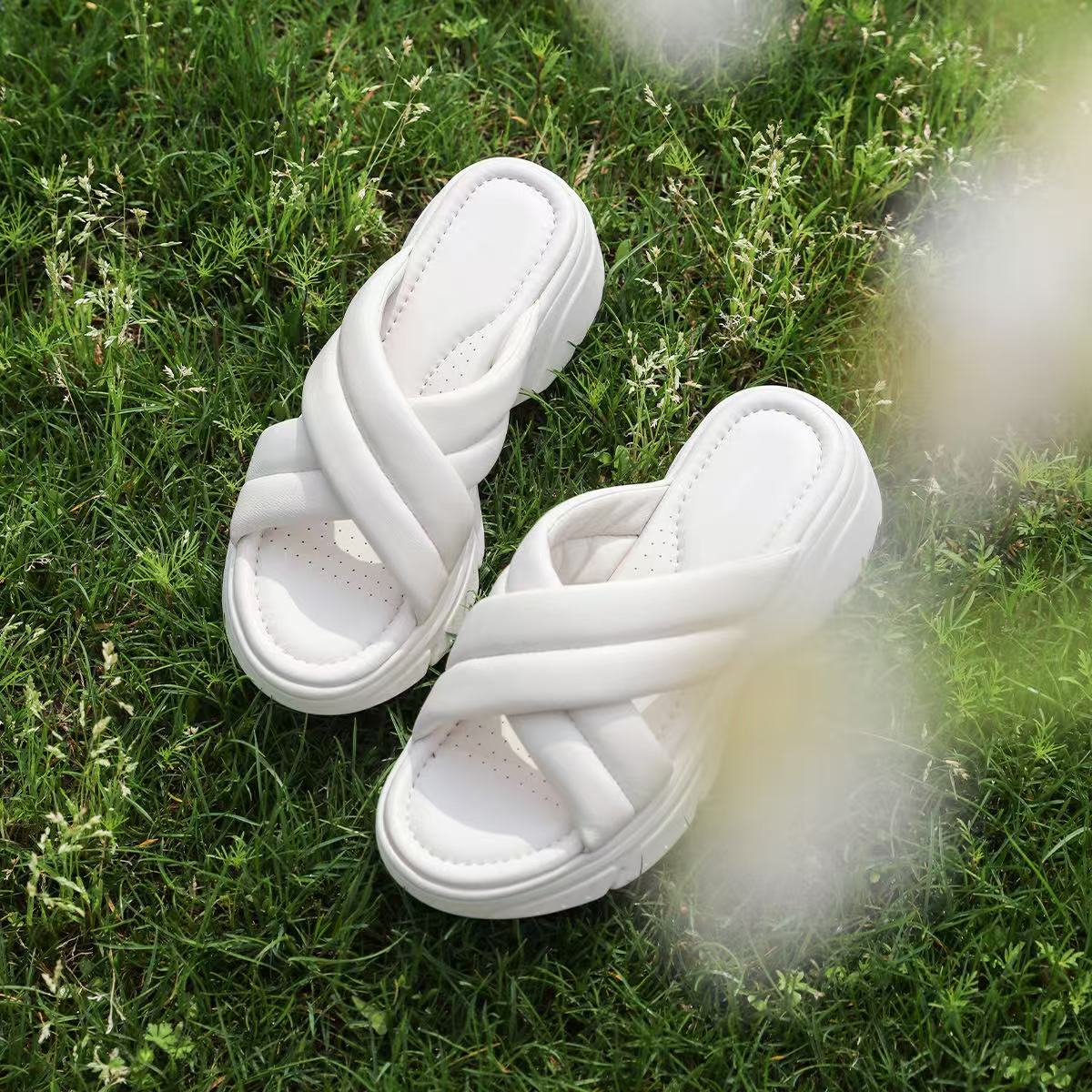 【水上漂凉拖 夏日百搭王】牛皮罗马凉拖 鞋面硬挺有型 不易软榻 交叉带凉拖 羊皮材质柔软细腻 4.5cm跟高 轻盈不易累脚