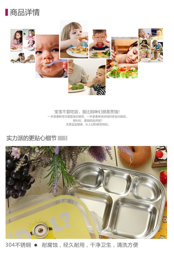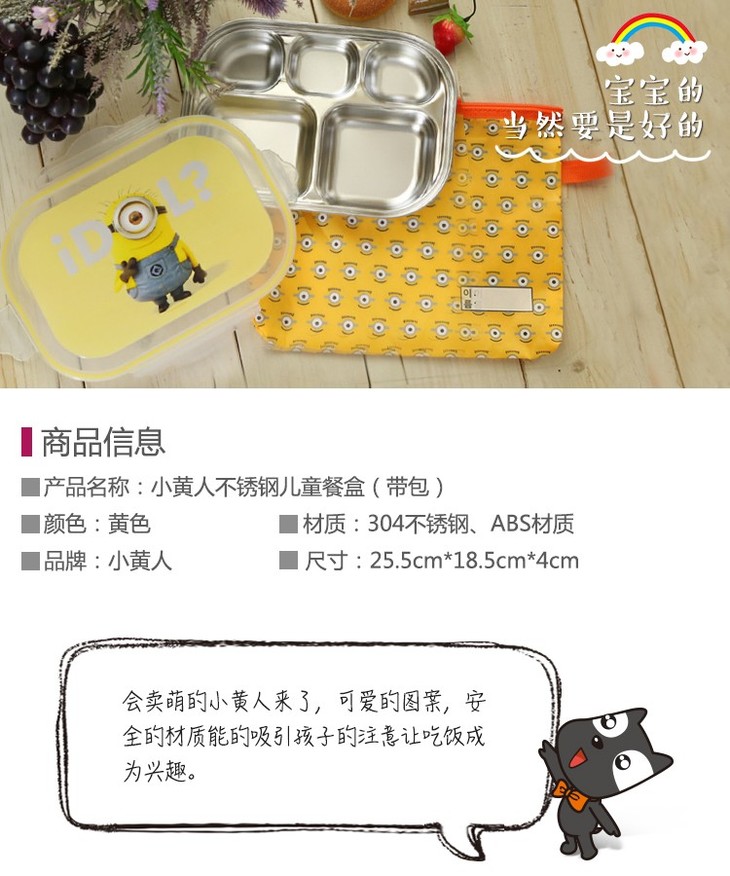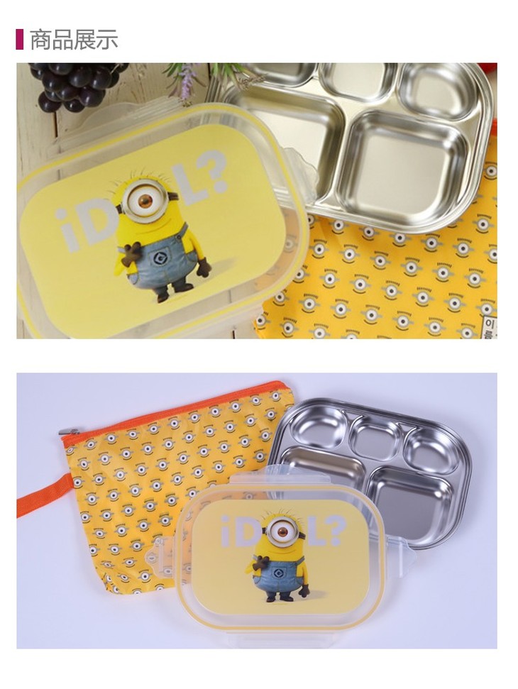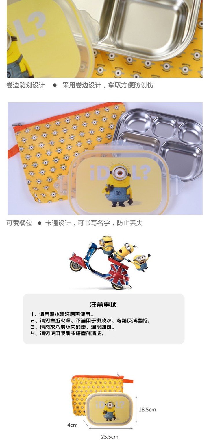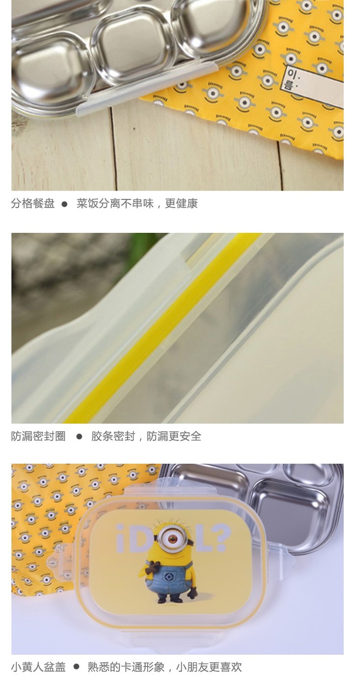 送筷子盒和筷子 韩国 小黄人高级304不锈钢 儿童饭盒(带包)