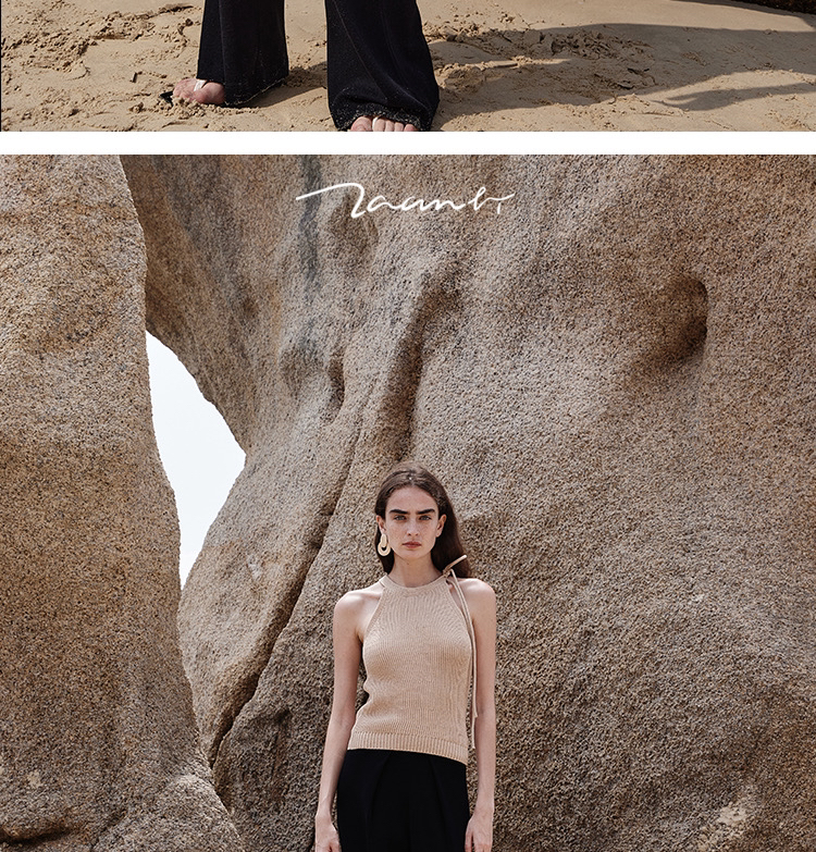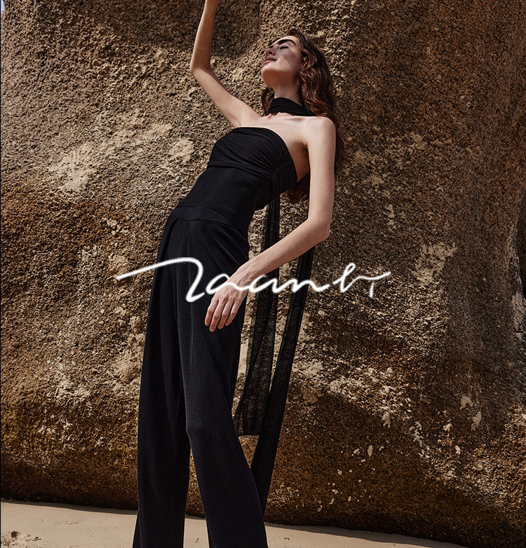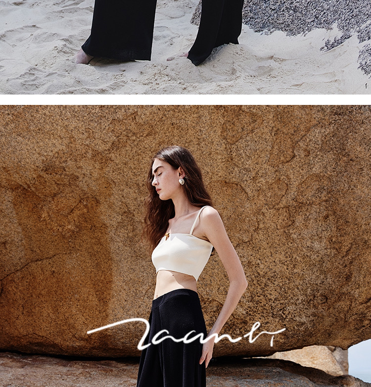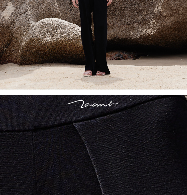 ZAANLI|ZN40006 雾黑色 桑蚕丝垂感前褶针织阔腿裤
