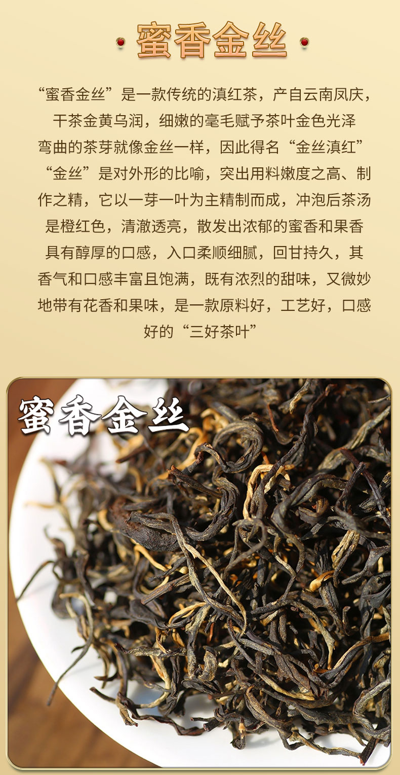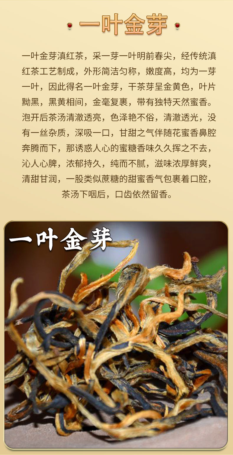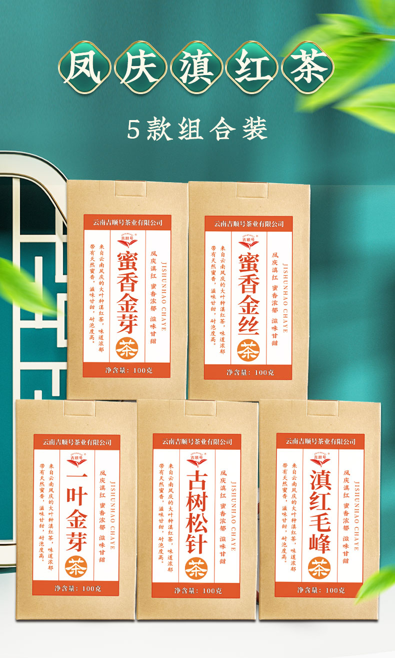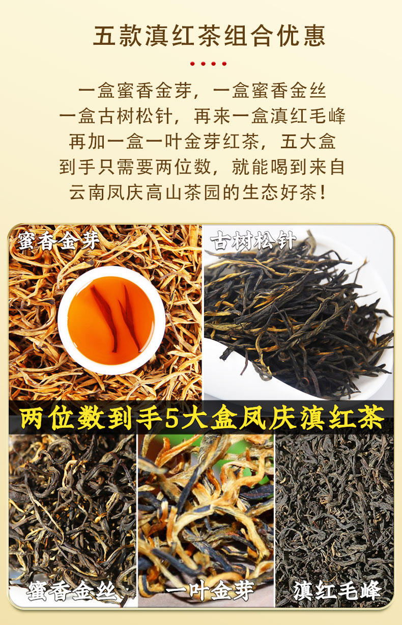 2026年滇红茶组合 蜜香金芽 古树松针 蜜香金丝 滇红毛峰 一叶金芽各100克总量500克/组