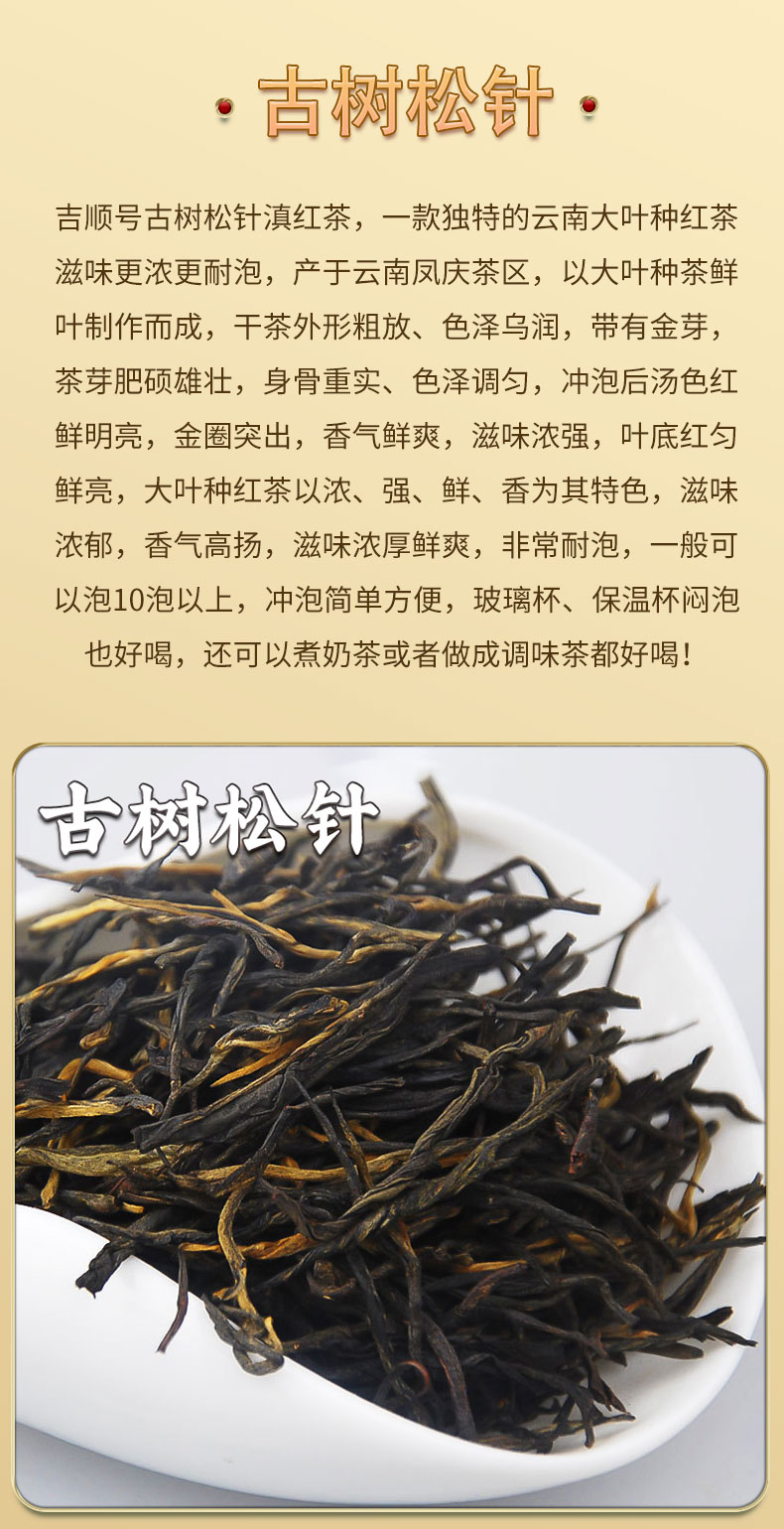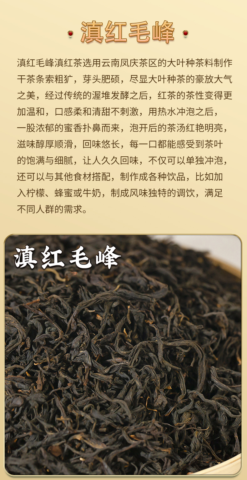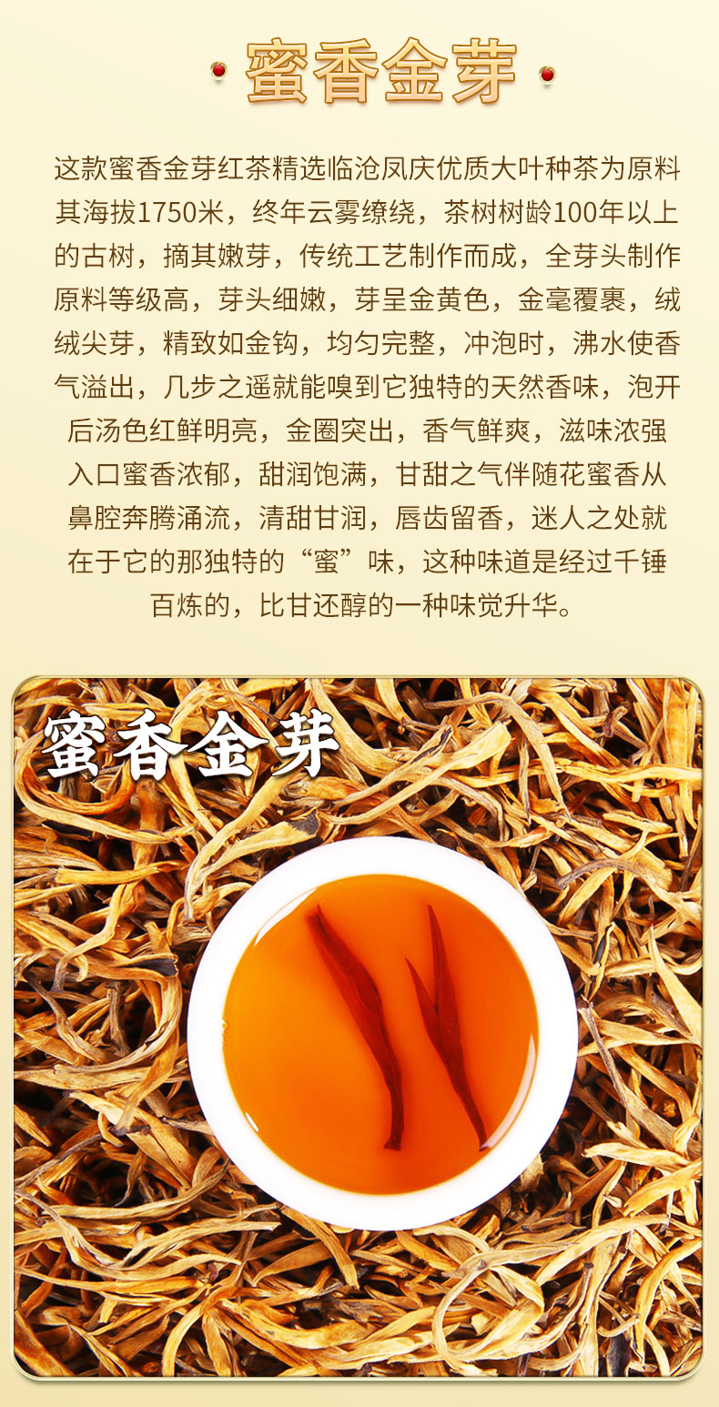 2026年滇红茶组合 蜜香金芽 古树松针 蜜香金丝 滇红毛峰 一叶金芽各100克总量500克/组
